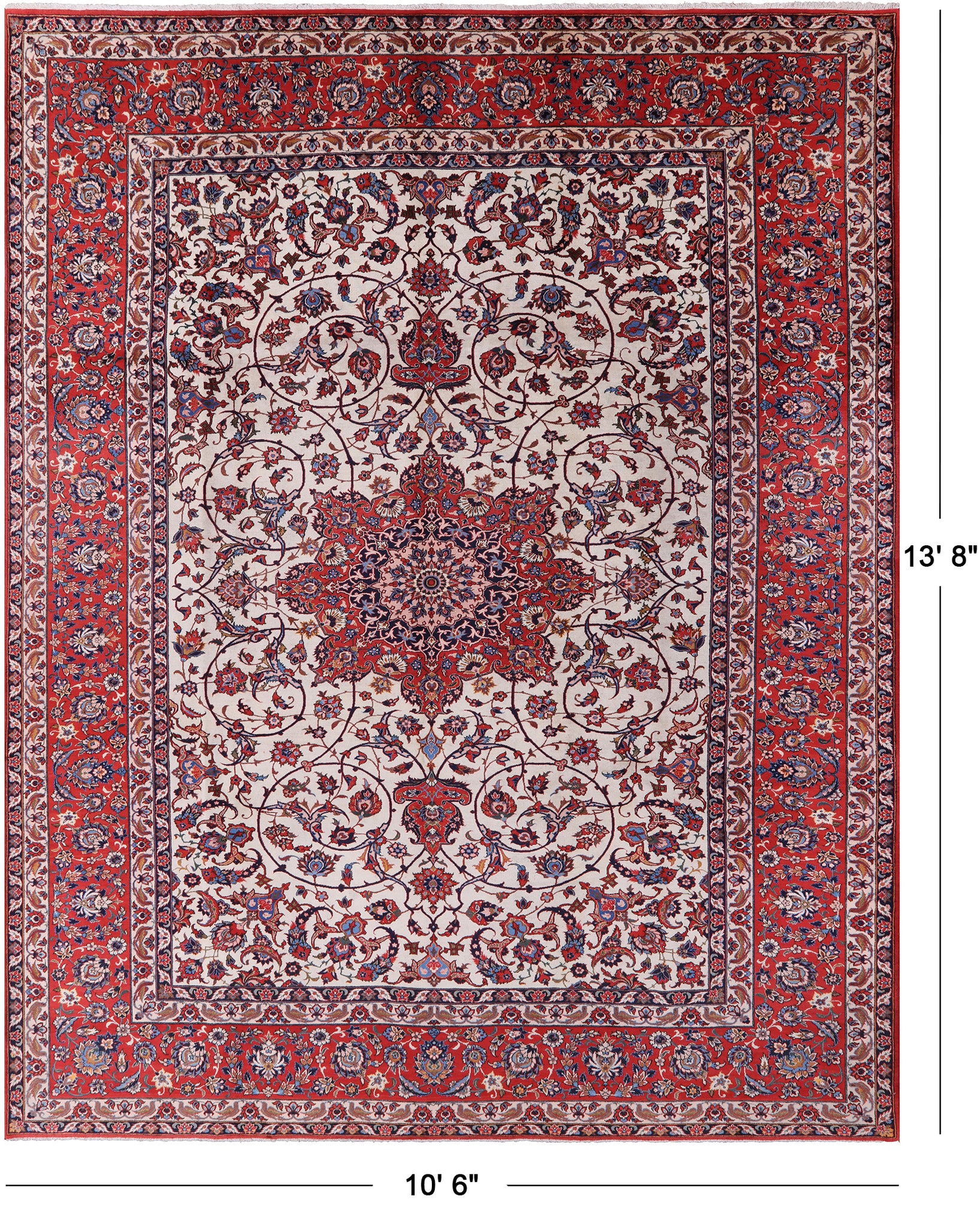 Ivory New Antique Persian Isfahan Excellent Condition Area Rug - 10' 6" X 13' 8"