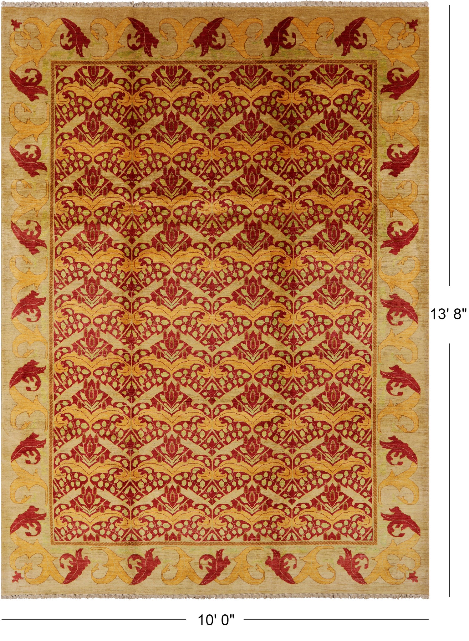 Red William Morris Hand Knotted Wool Rug - 10' 0" X 13' 8"