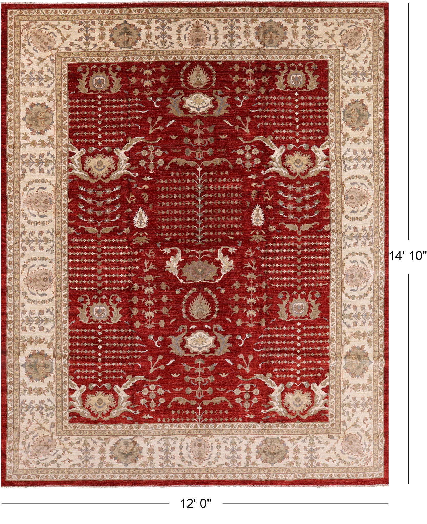Red Peshawar Hand Knotted Area Rug - 12' 0" X 14' 10"
