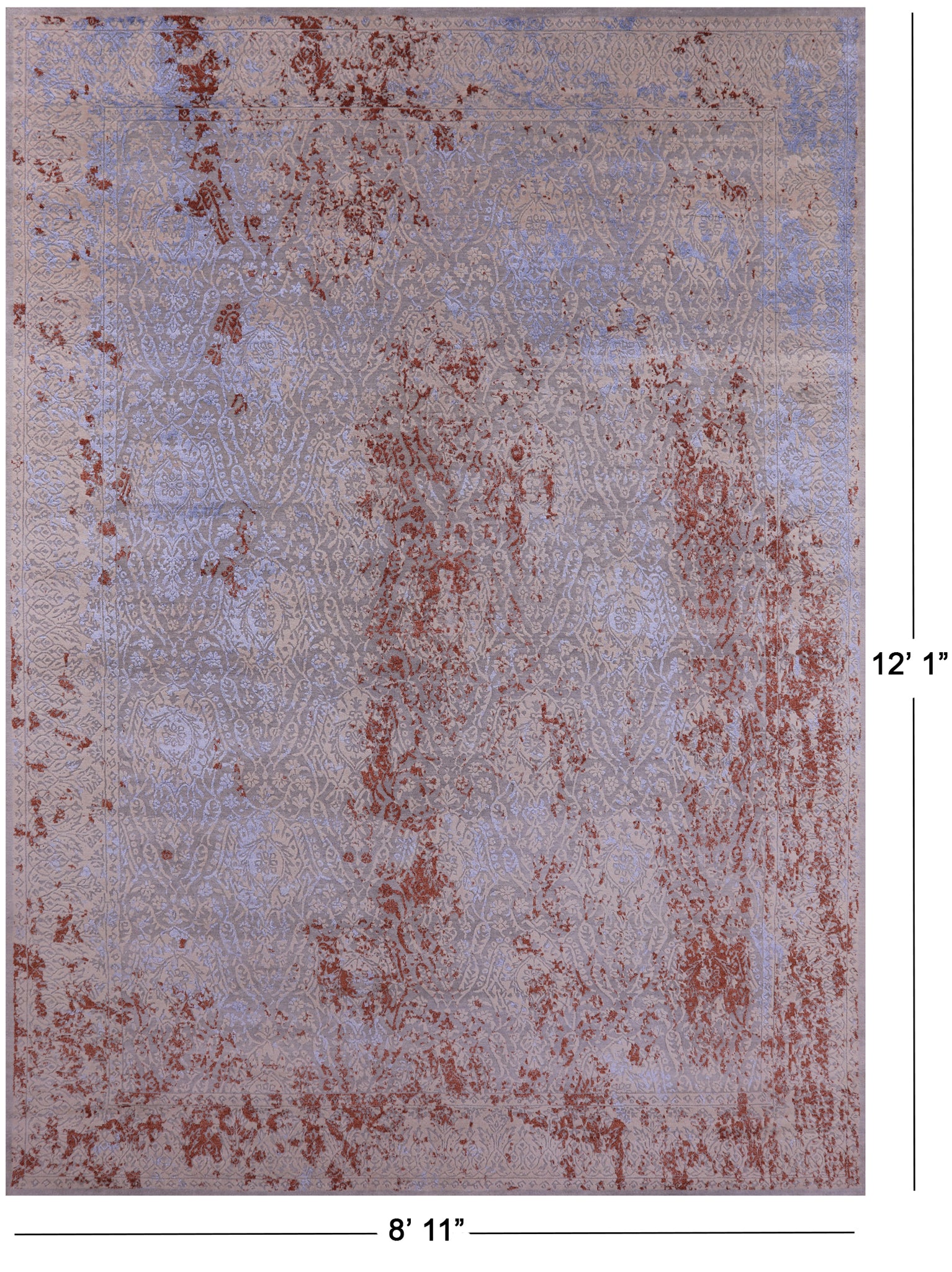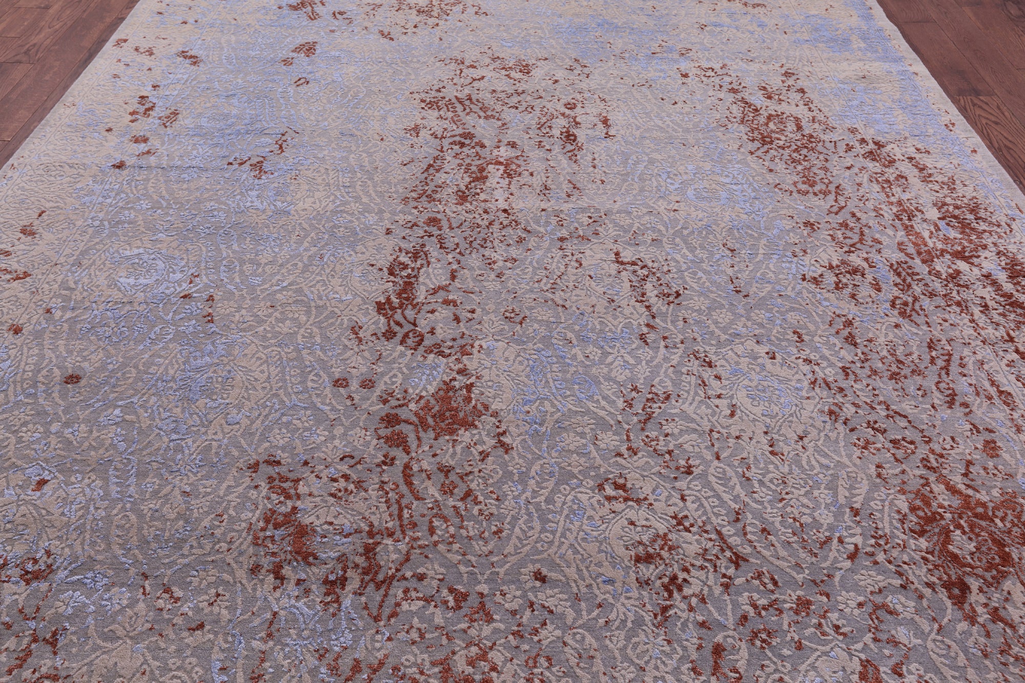 Grey Contemporary Hand Knotted Wool & Silk Rug - 8' 11" X 12' 1"