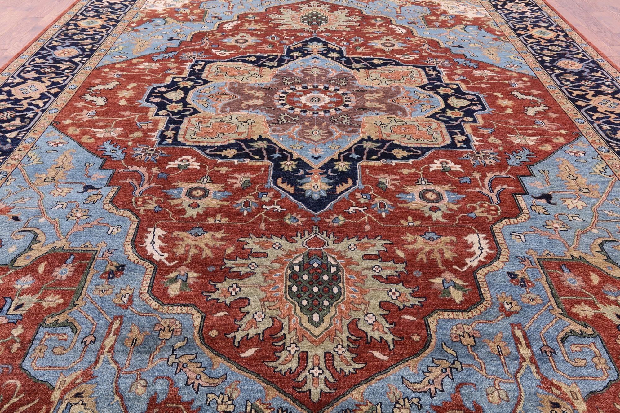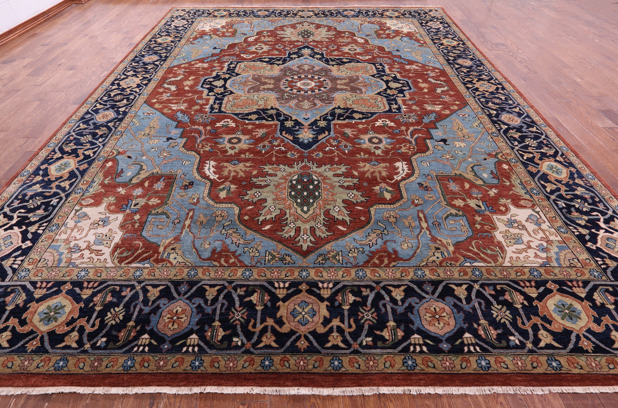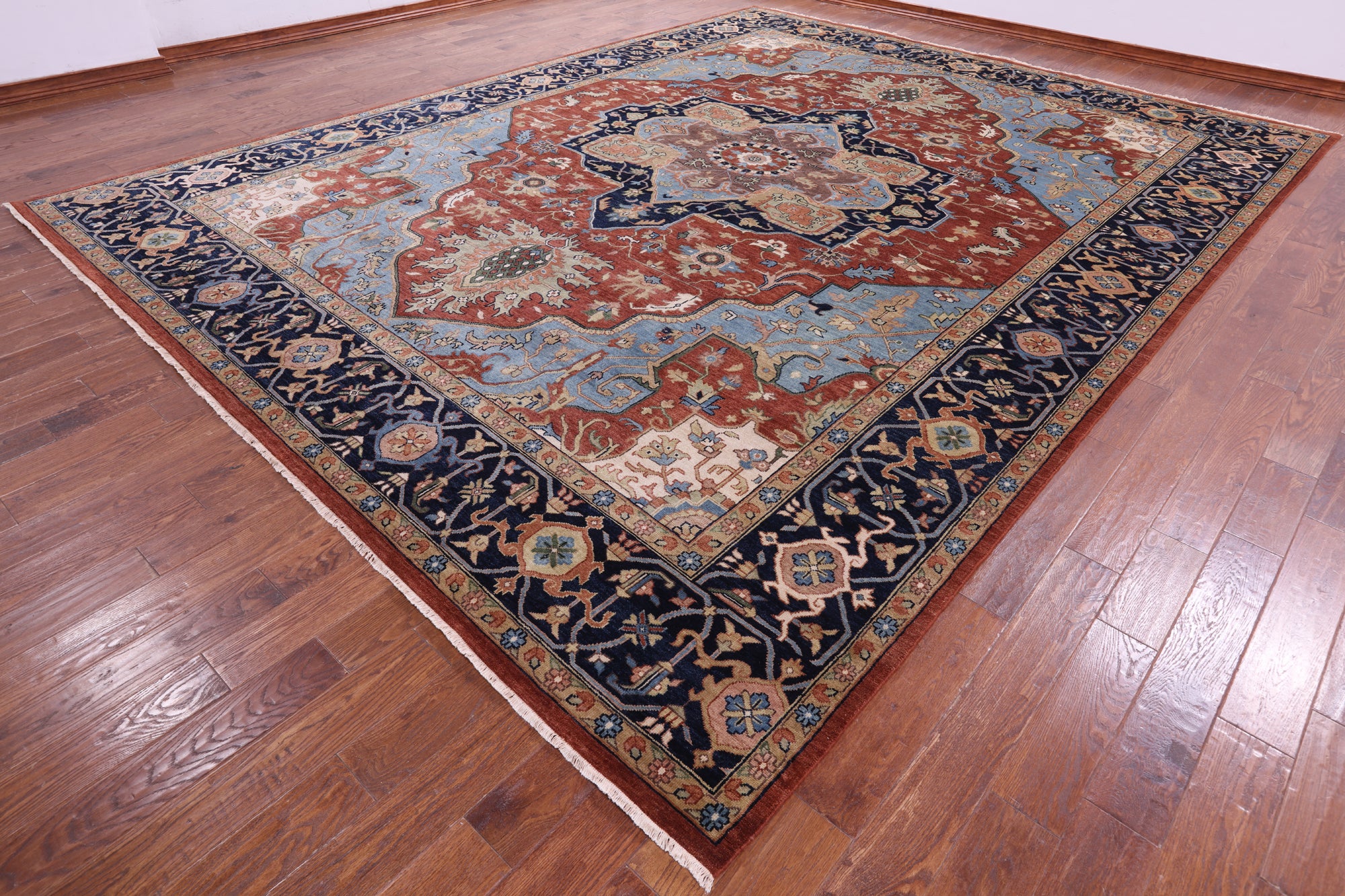 The Heriz Serapi rug is a masterpiece of craftsmanship, showcasing bold geometric patterns and rich colors. Each rug is meticulously hand knotted with precision, featuring a distinctive design that seamlessly blends durability with timeless elegance. Crafted from high-quality materials, this rug serves as an enduring and captivating accent piece, adding a touch of traditional charm to any living space.