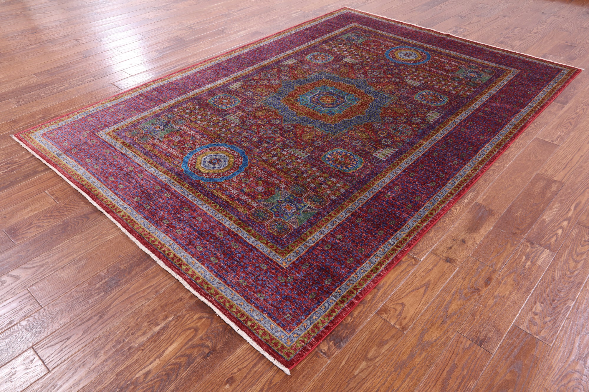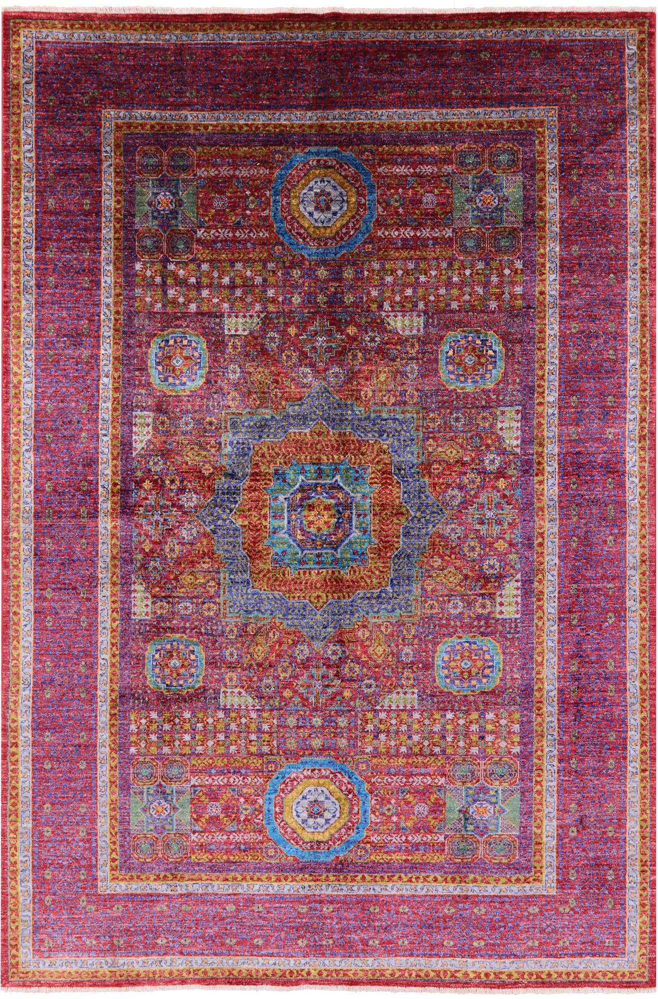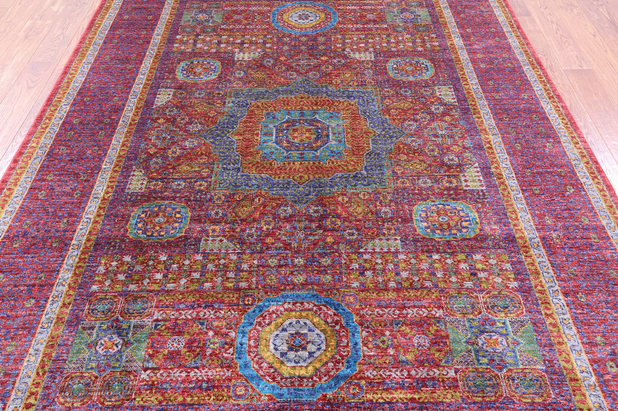 Red Geometric Persian Mamluk Hand Knotted Wool Rug - 6' 9" X 9' 9"