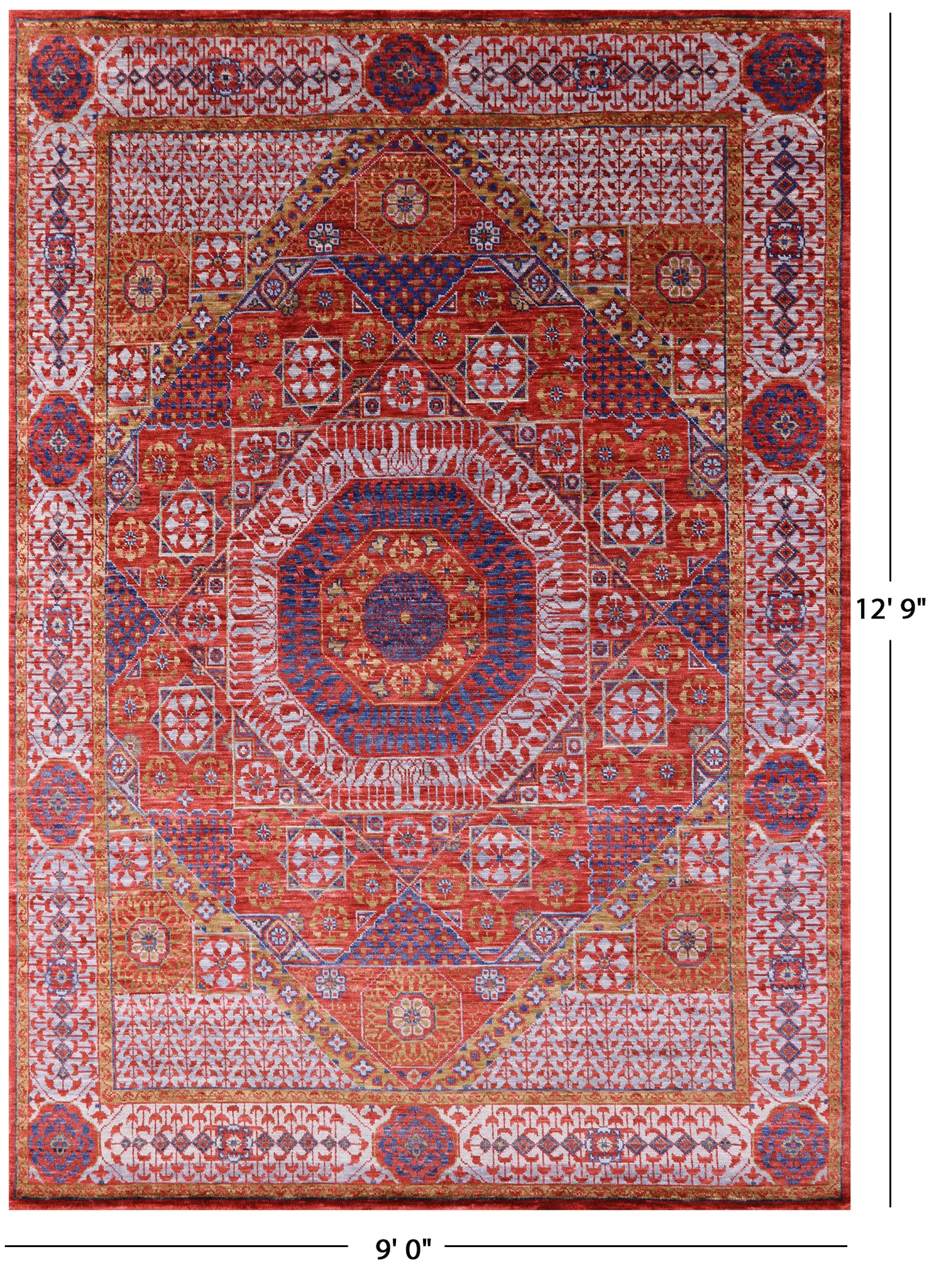 Red Geometric Persian Mamluk Handmade Wool Rug - 9' 0" X 12' 9"