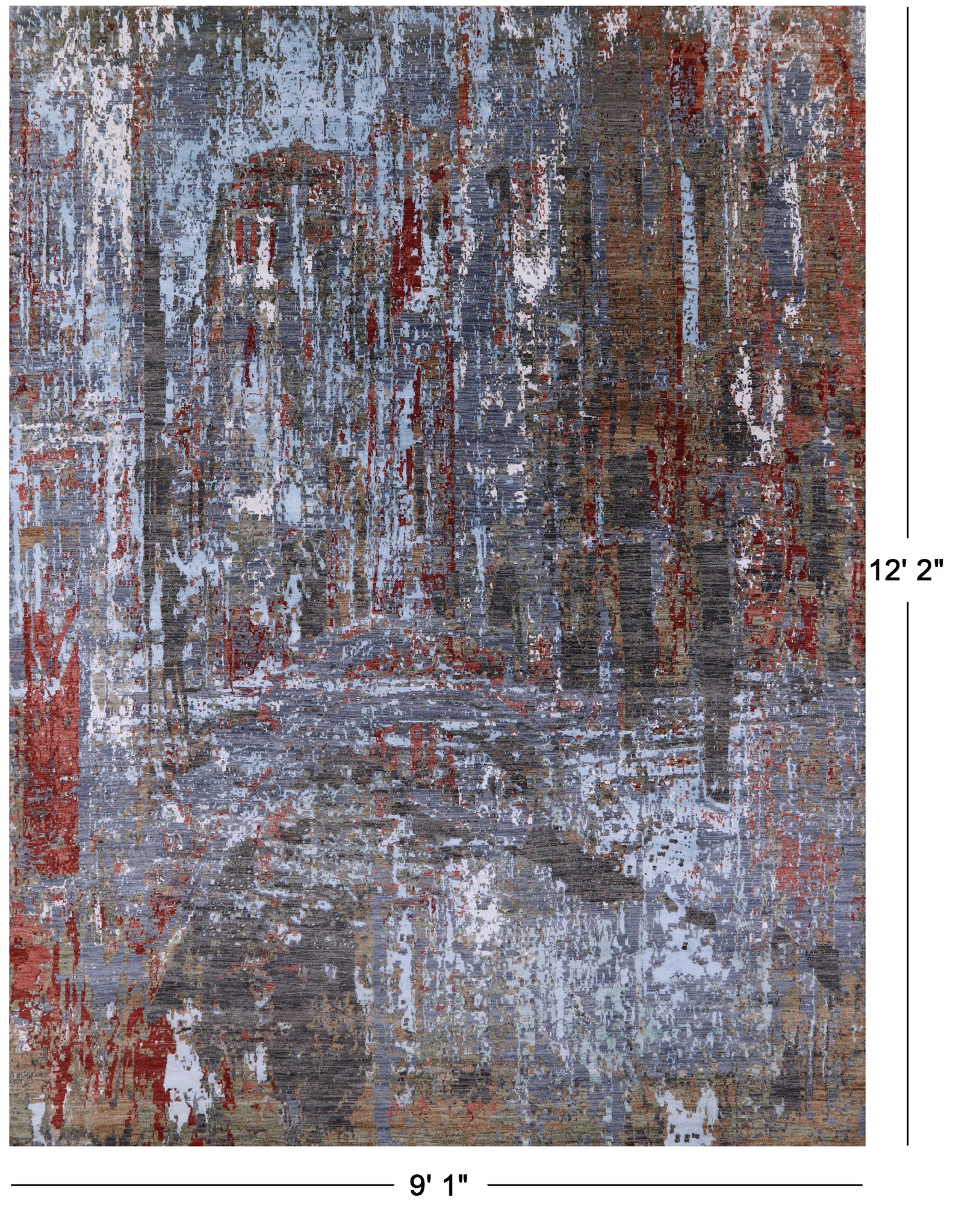 Modern Hand Knotted Wool & Silk Rug - 9' 1" X 12' 2"