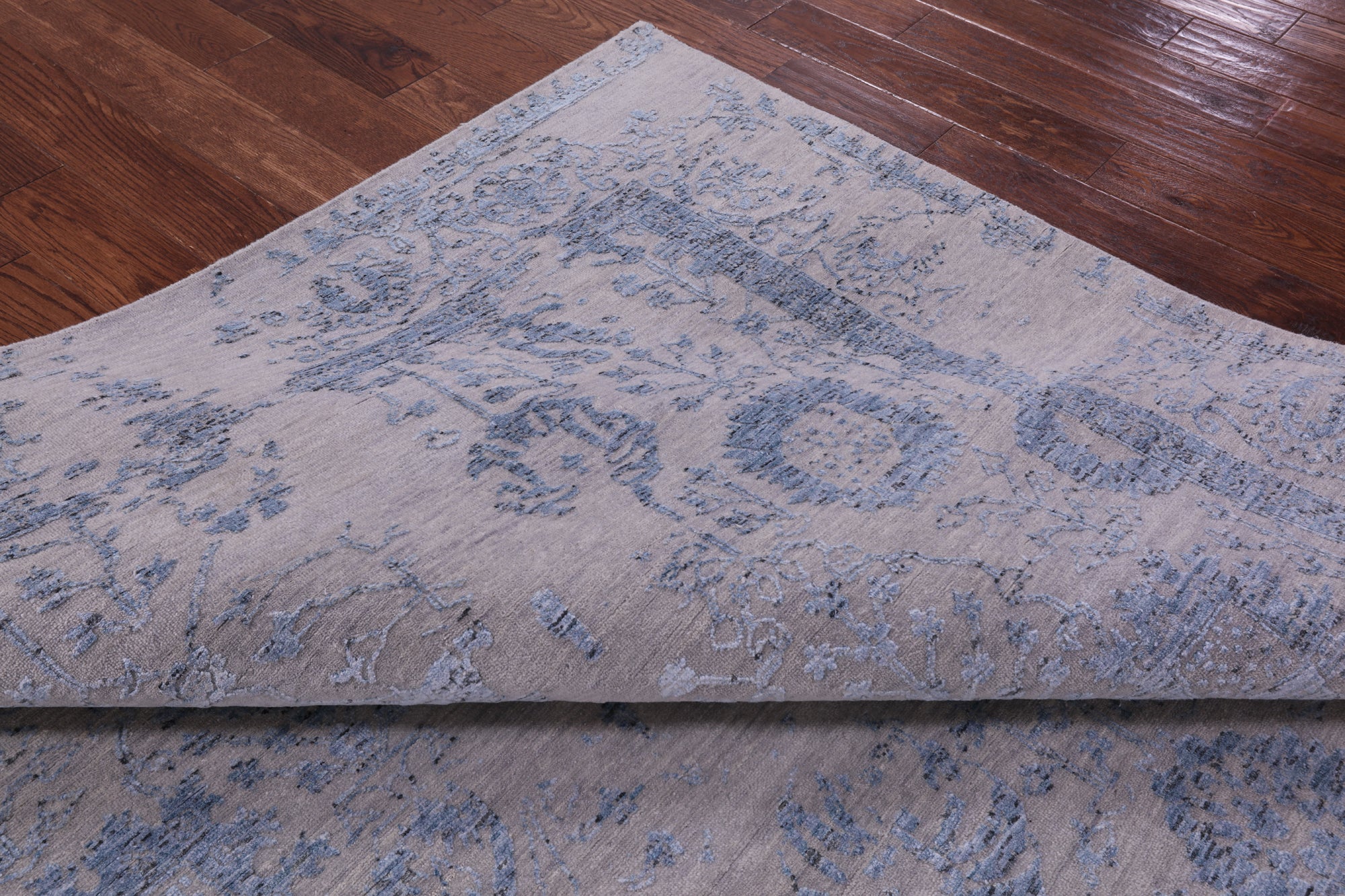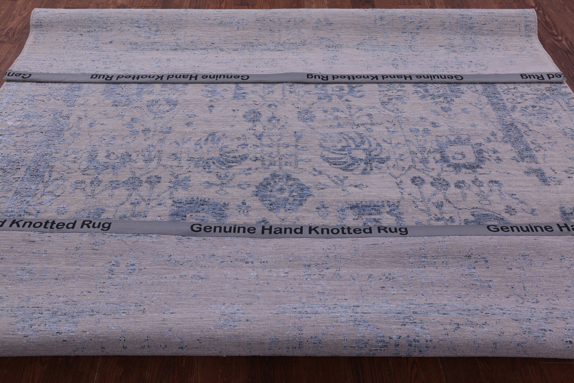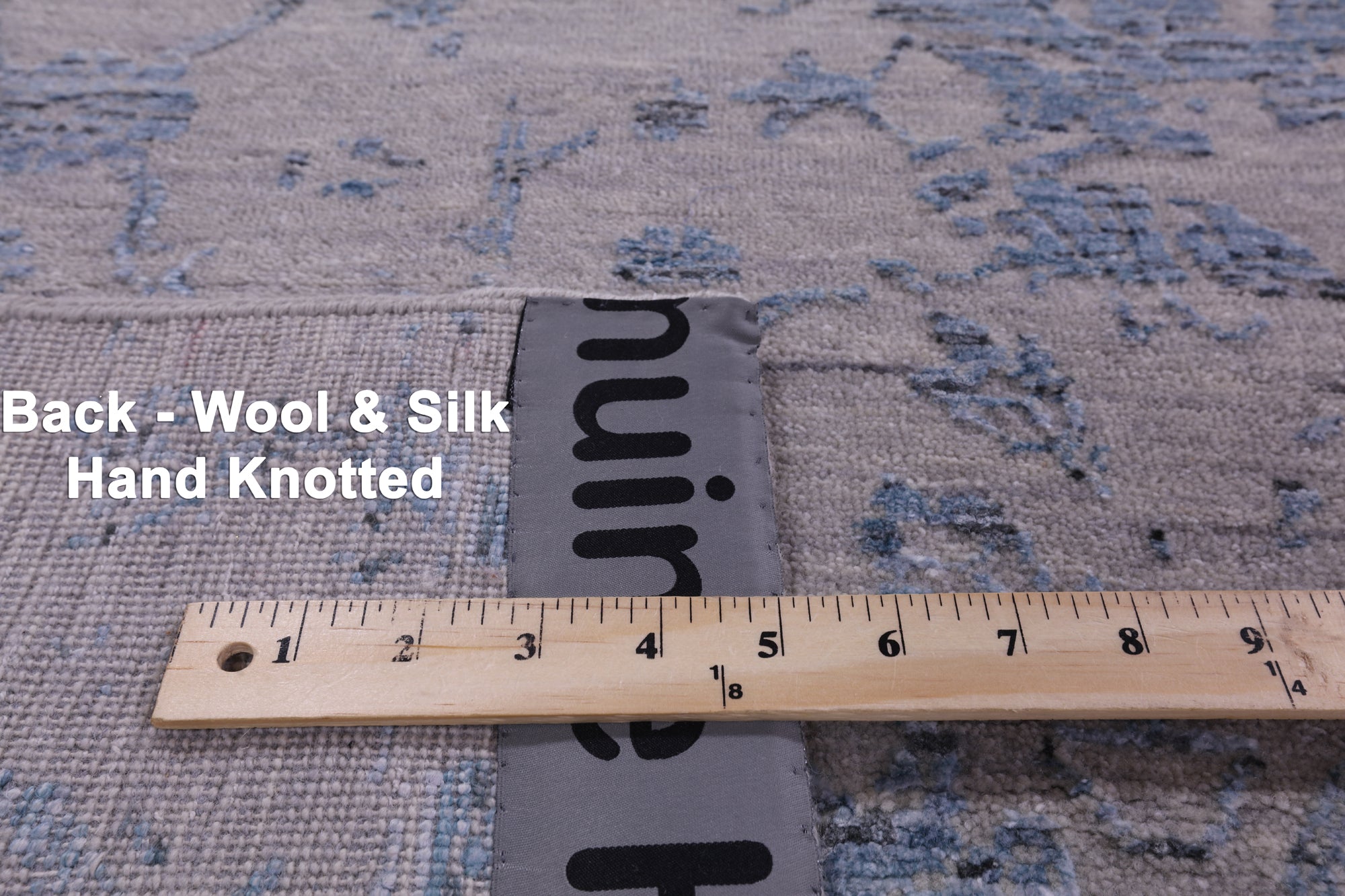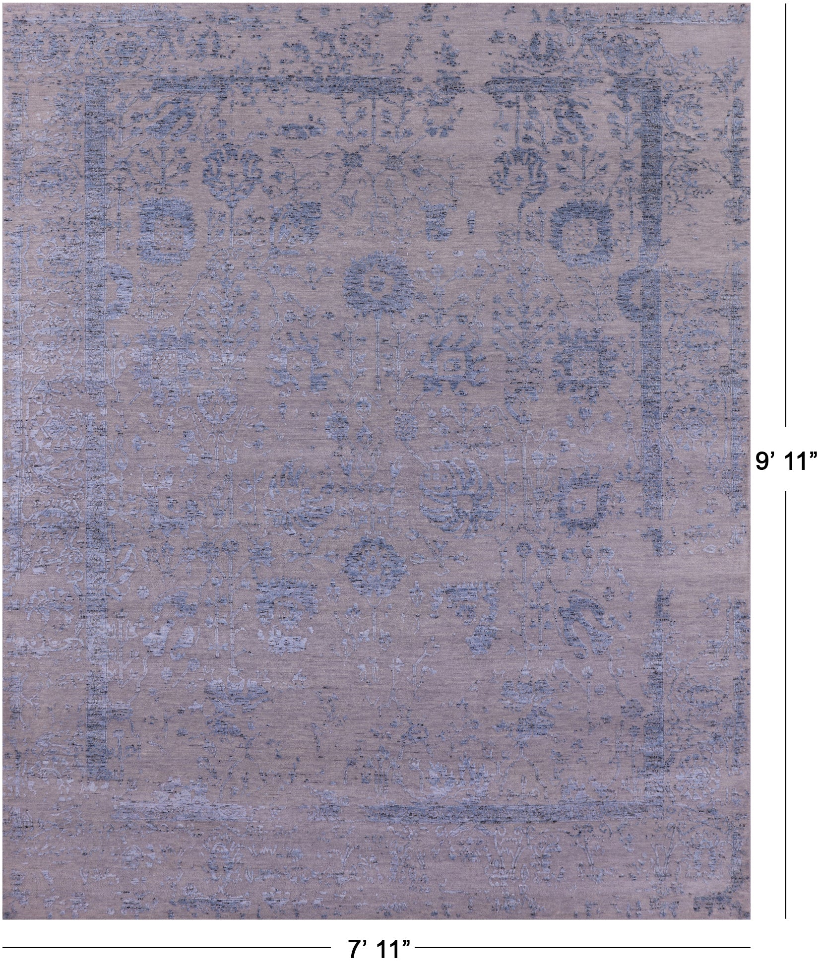 Grey Persian Tabriz Hand Knotted Wool & Silk Rug - 7' 11" X 9' 11"
