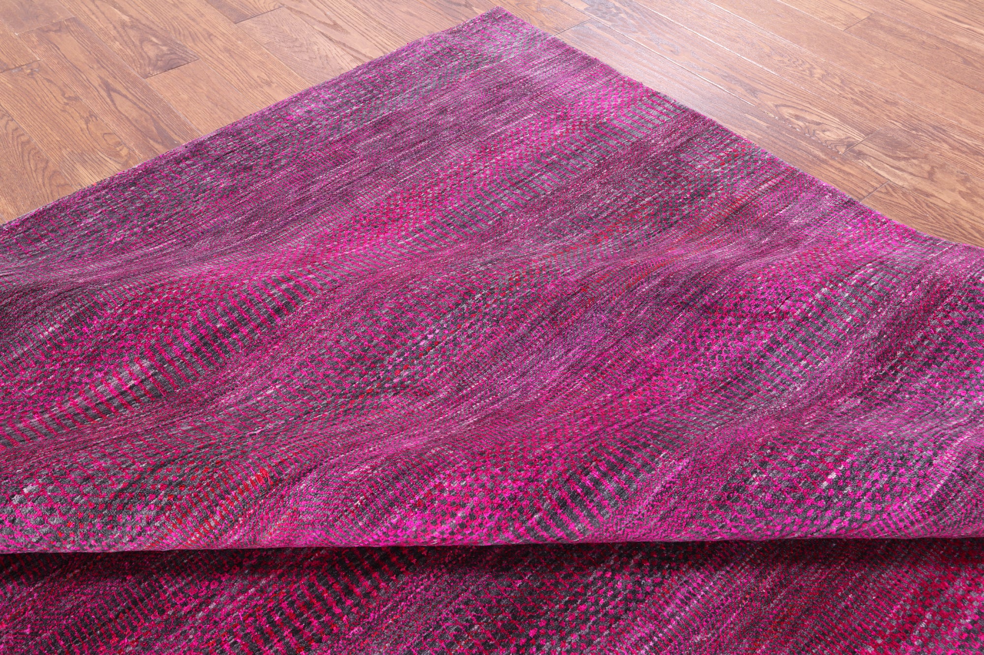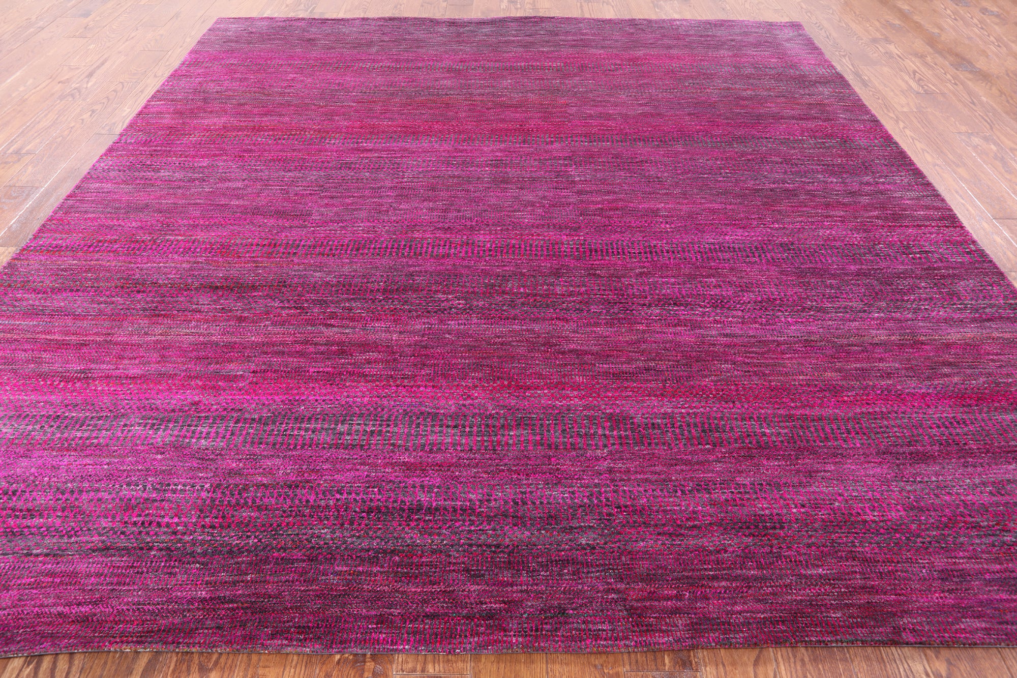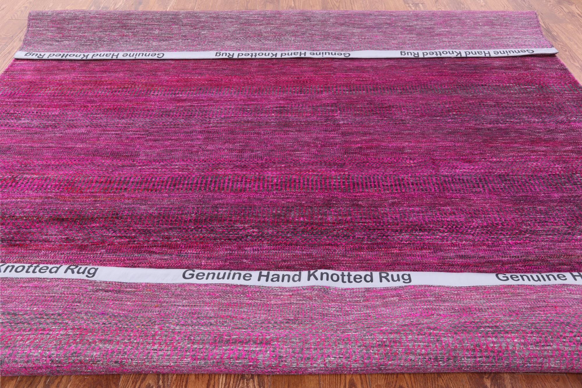 Pink Square Savannah Grass Hand Knotted Wool & Silk Rug - 9' 0" X 9' 0"