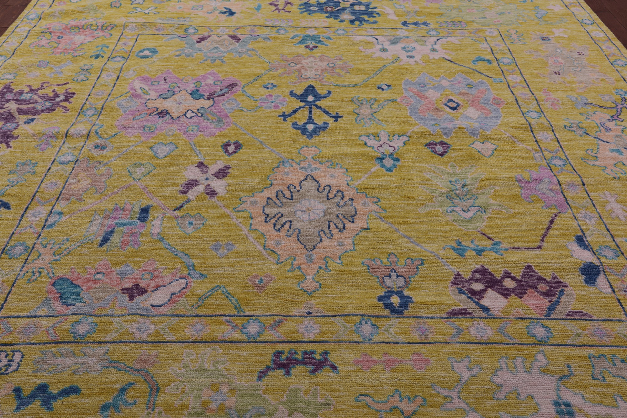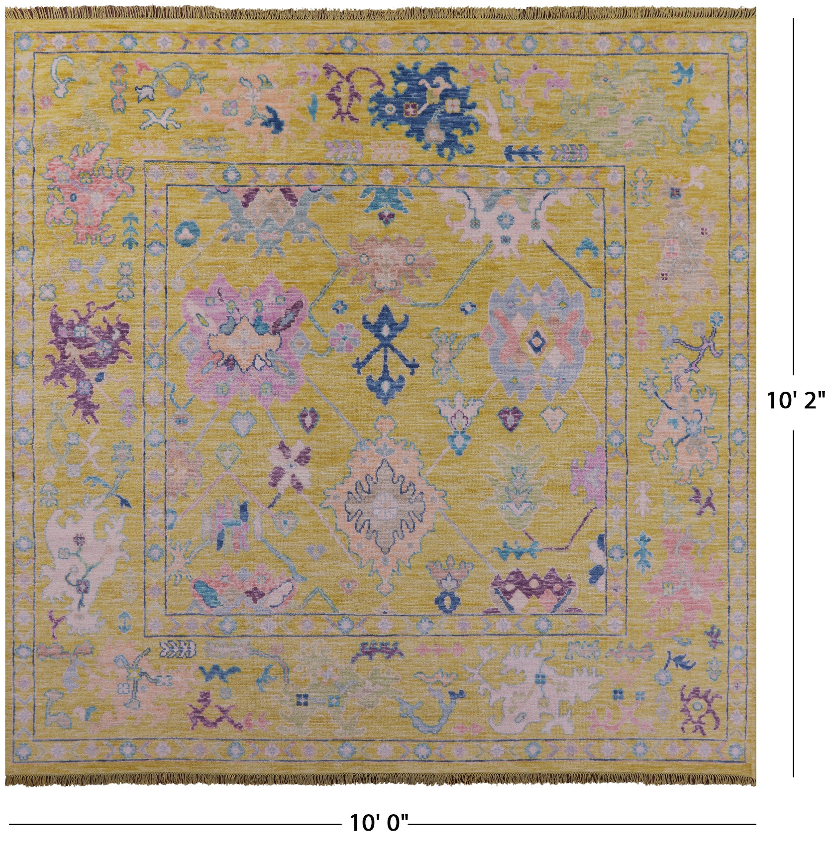 Gold Square Turkish Oushak Hand Knotted Wool Rug - 10' 0" X 10' 2"
