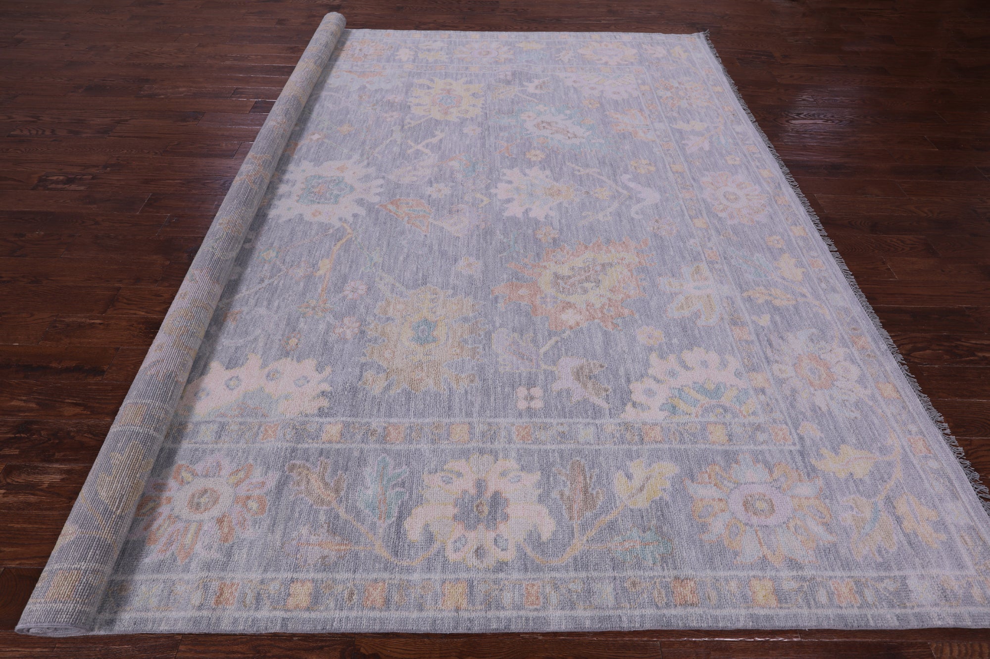 Silver Square Turkish Oushak Hand Knotted Wool Rug - 9' 9" X 10' 4"