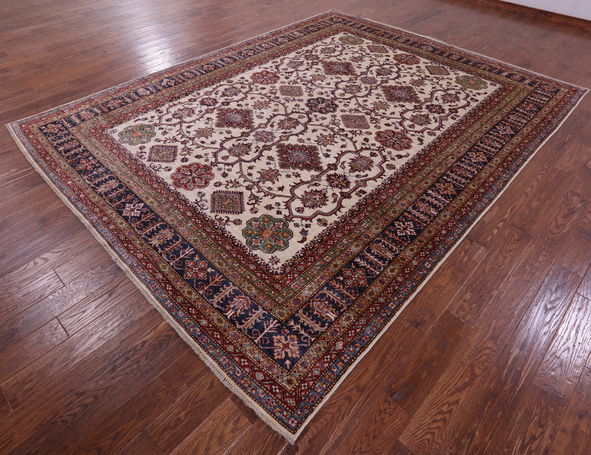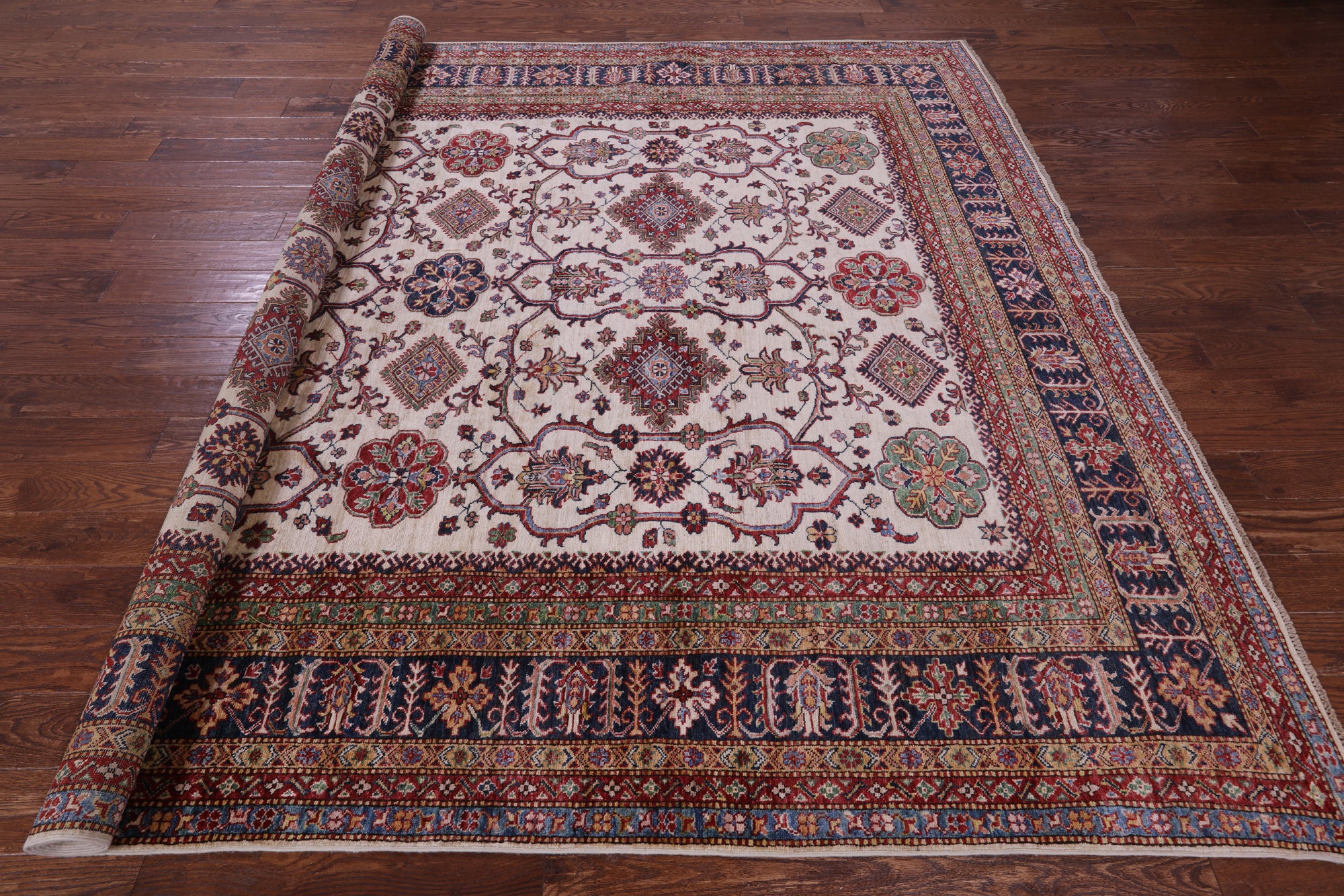 Ivory Super Kazak Hand Knotted Wool Rug - 8' 11" X 11' 4"