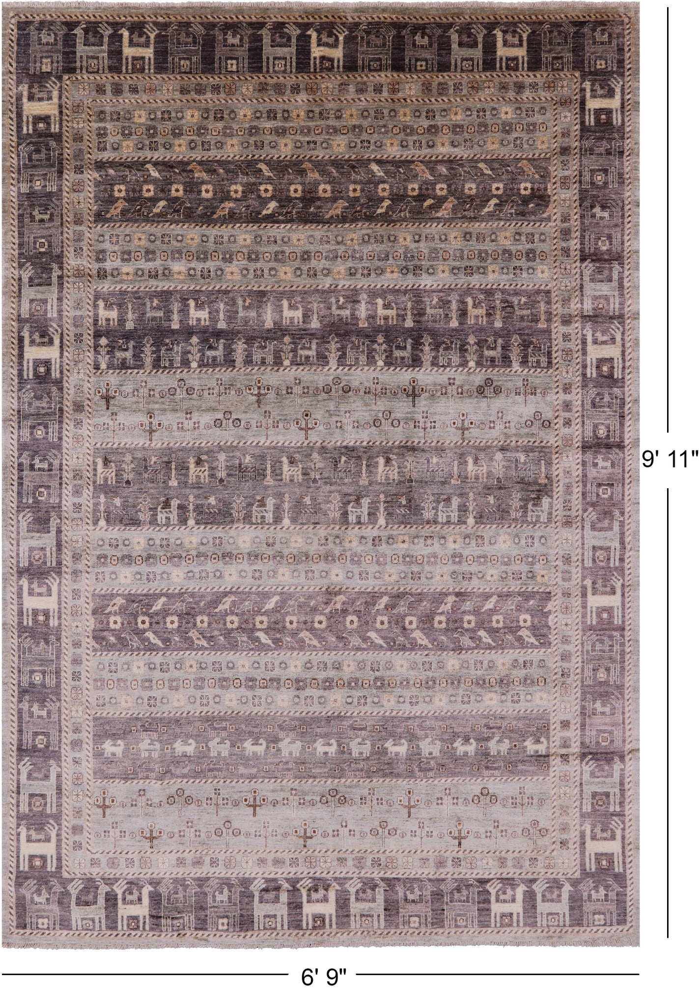 Tribal Persian Gabbeh Handmade Wool Rug - 6' 9" X 9' 11"