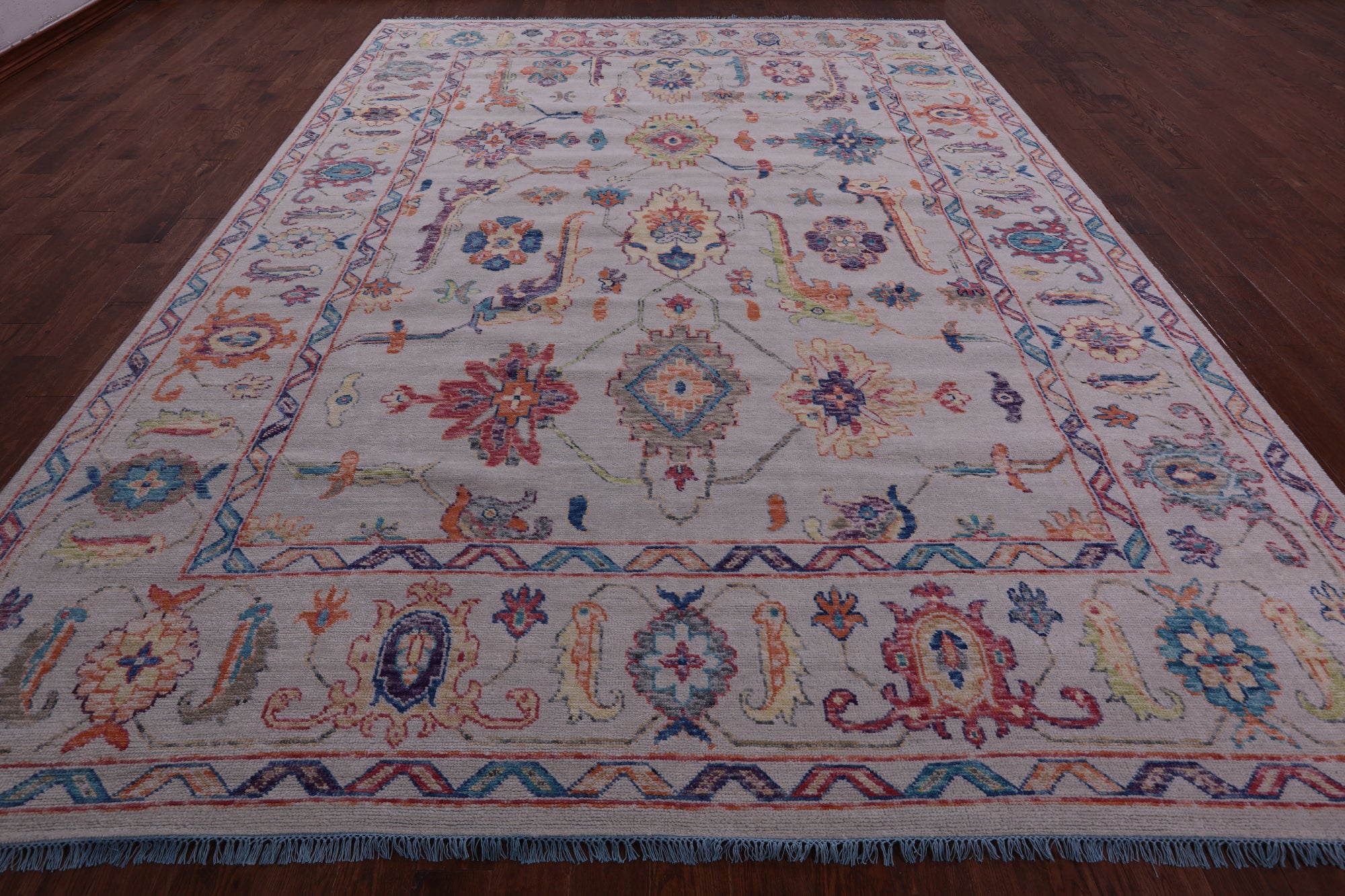 Ivory Turkish Oushak Hand Knotted Wool Rug - 10' 4" X 13' 10"