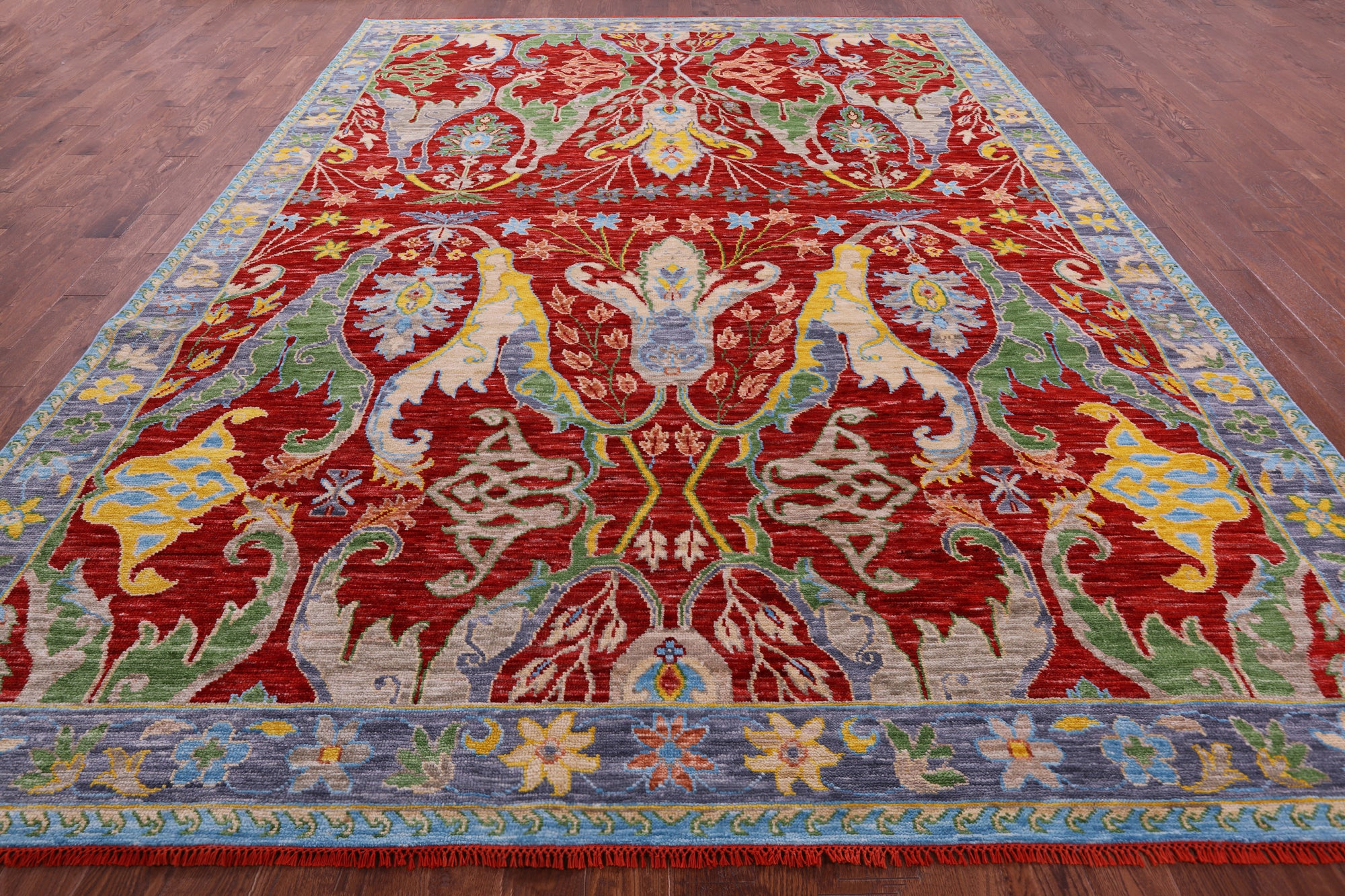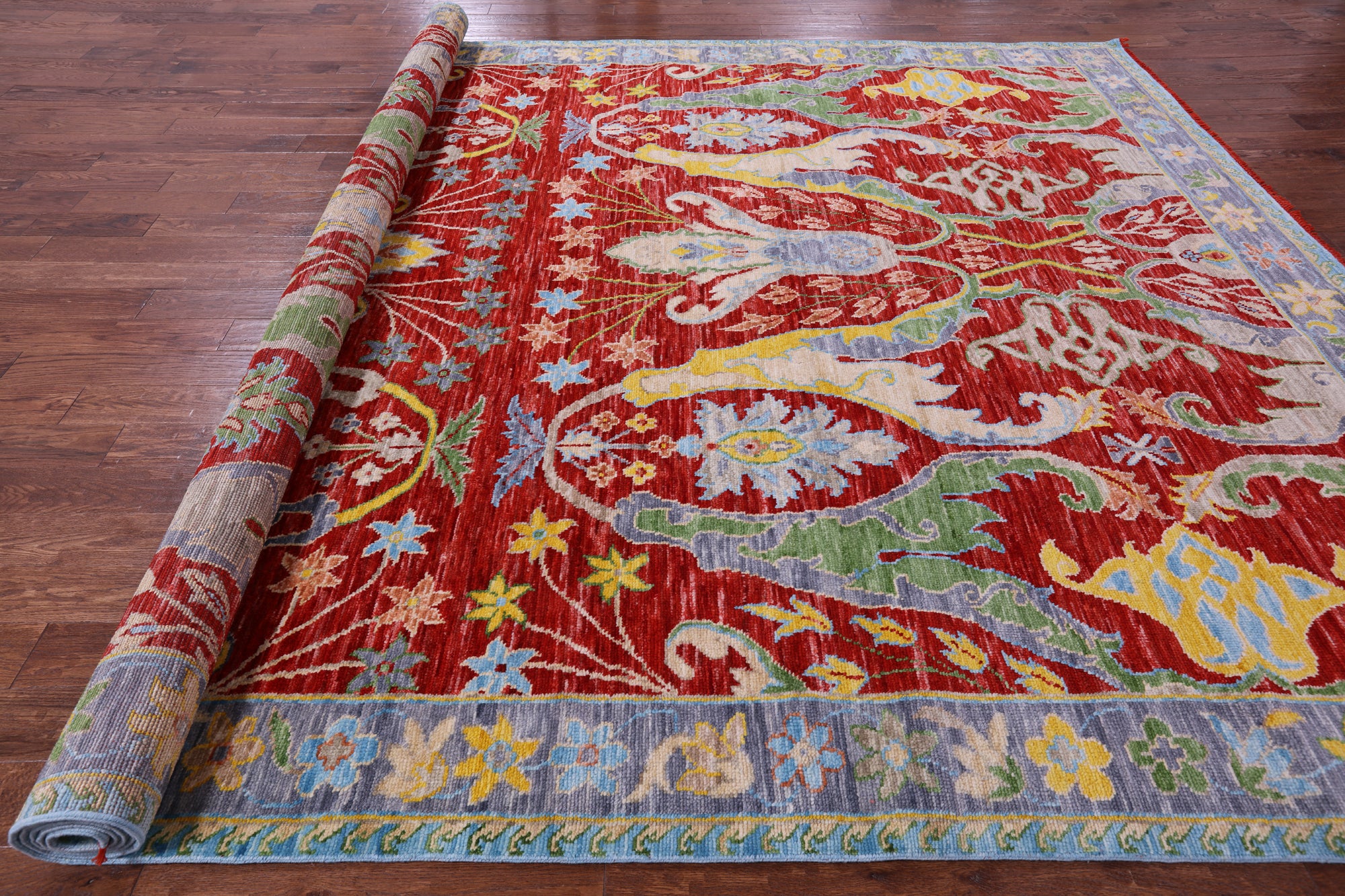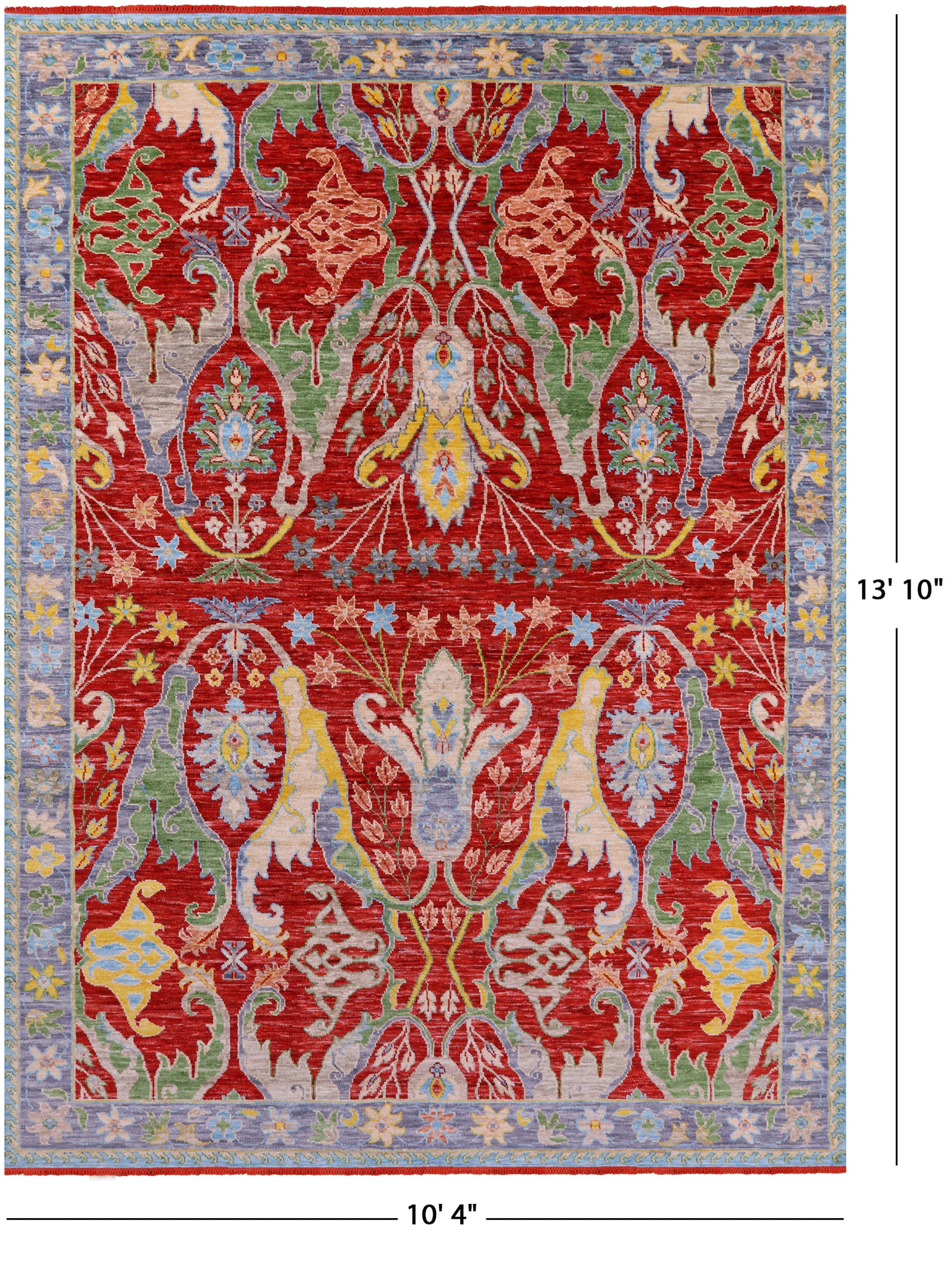 Red Turkish Oushak Hand Knotted Wool Rug - 10' 4" X 13' 10"