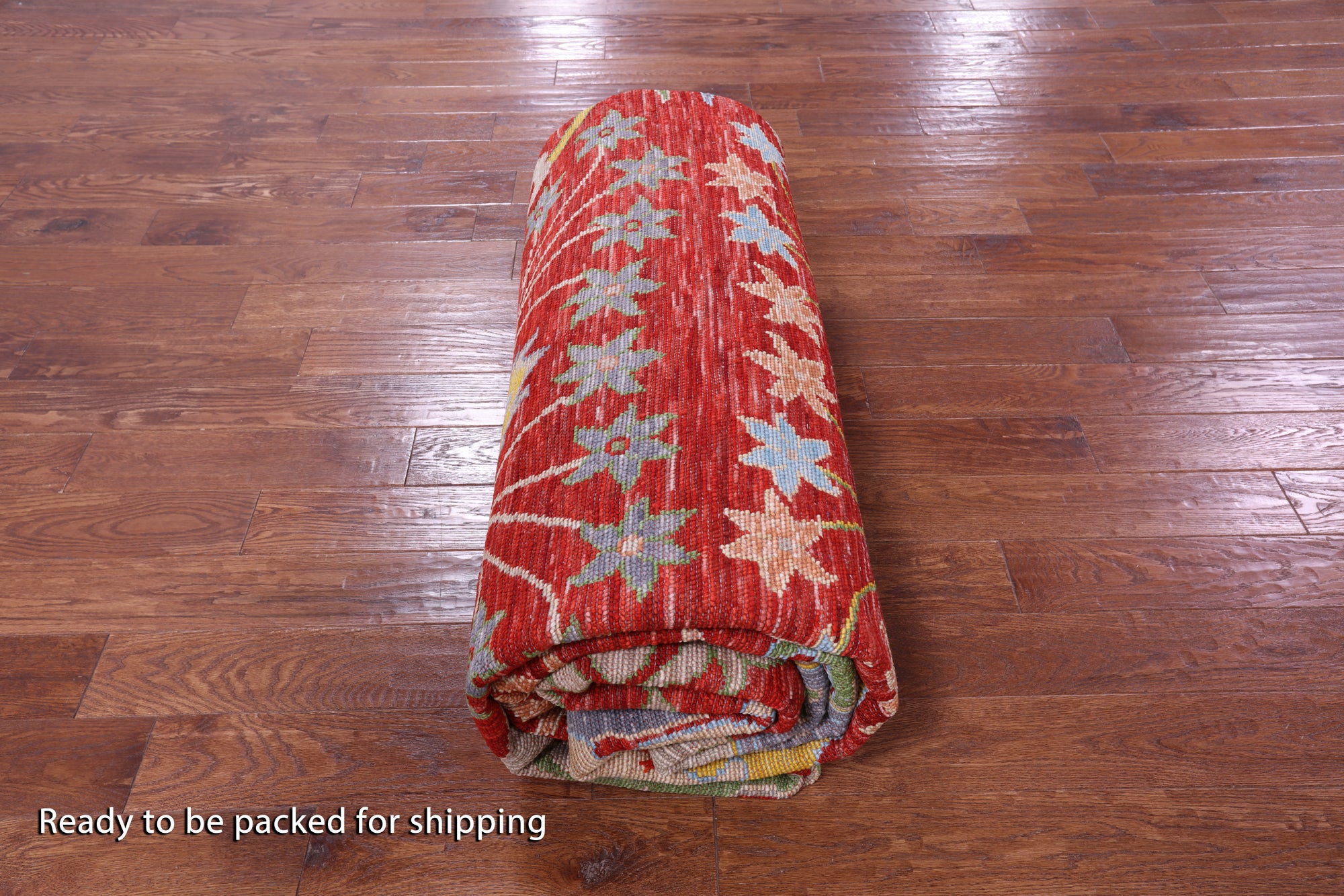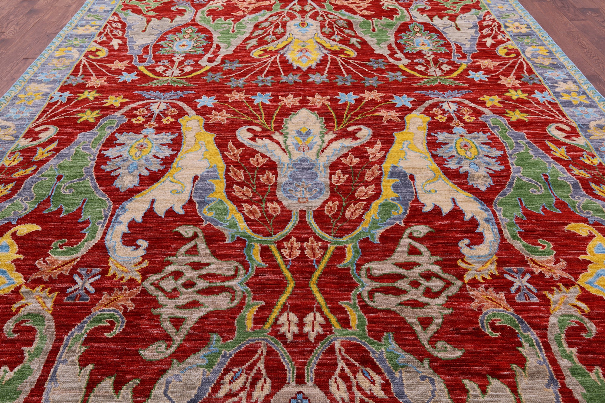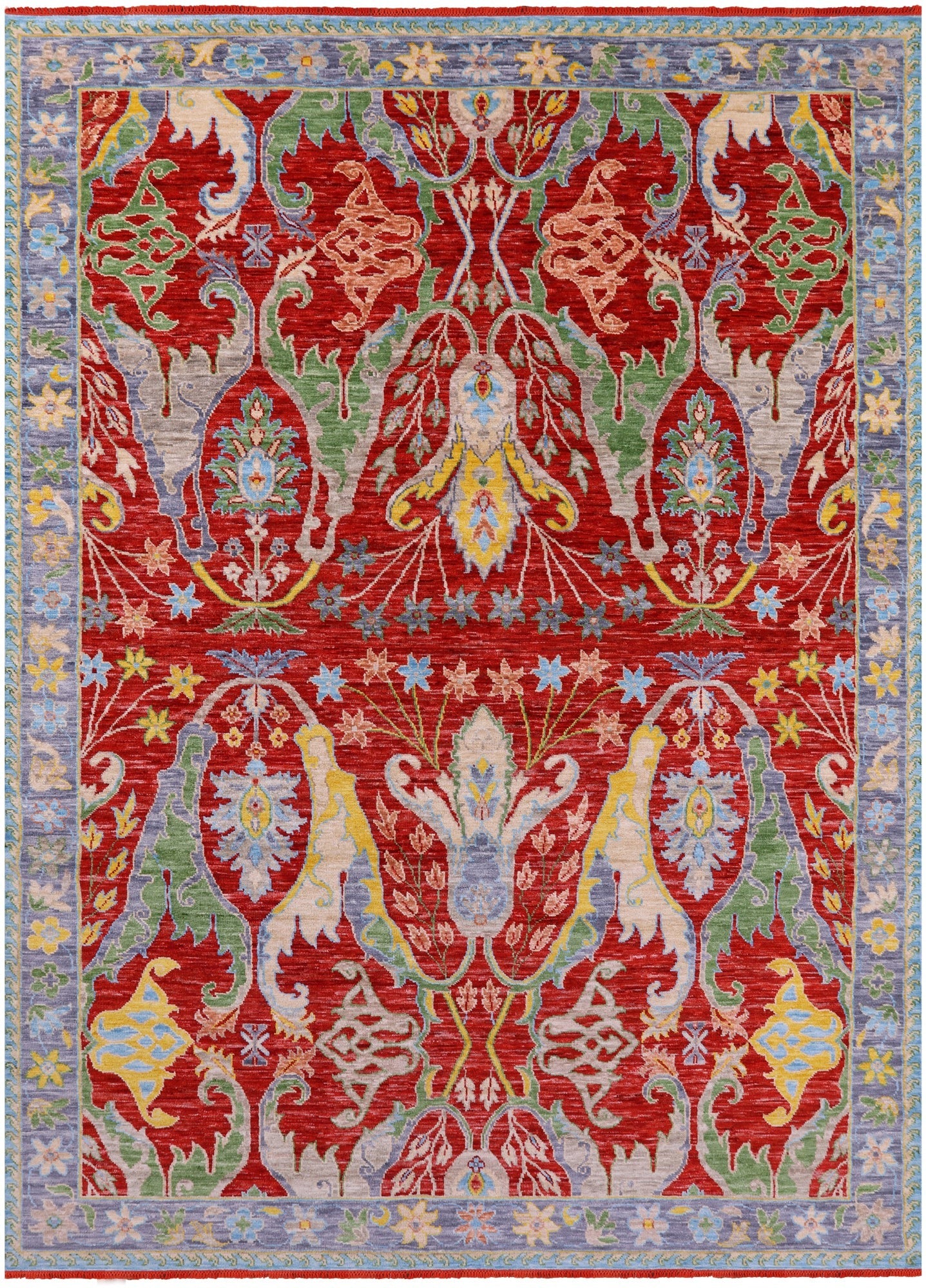 Red Turkish Oushak Hand Knotted Wool Rug - 10' 4" X 13' 10"