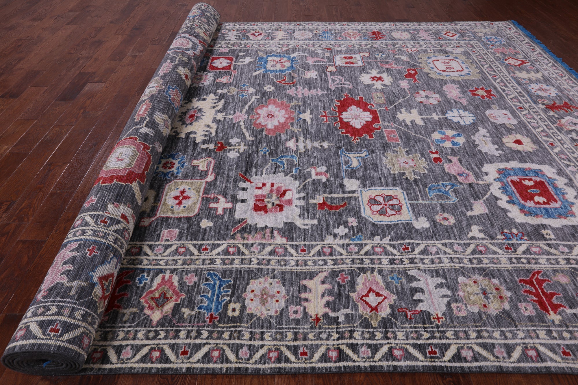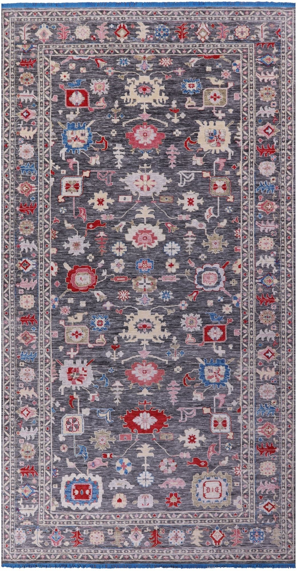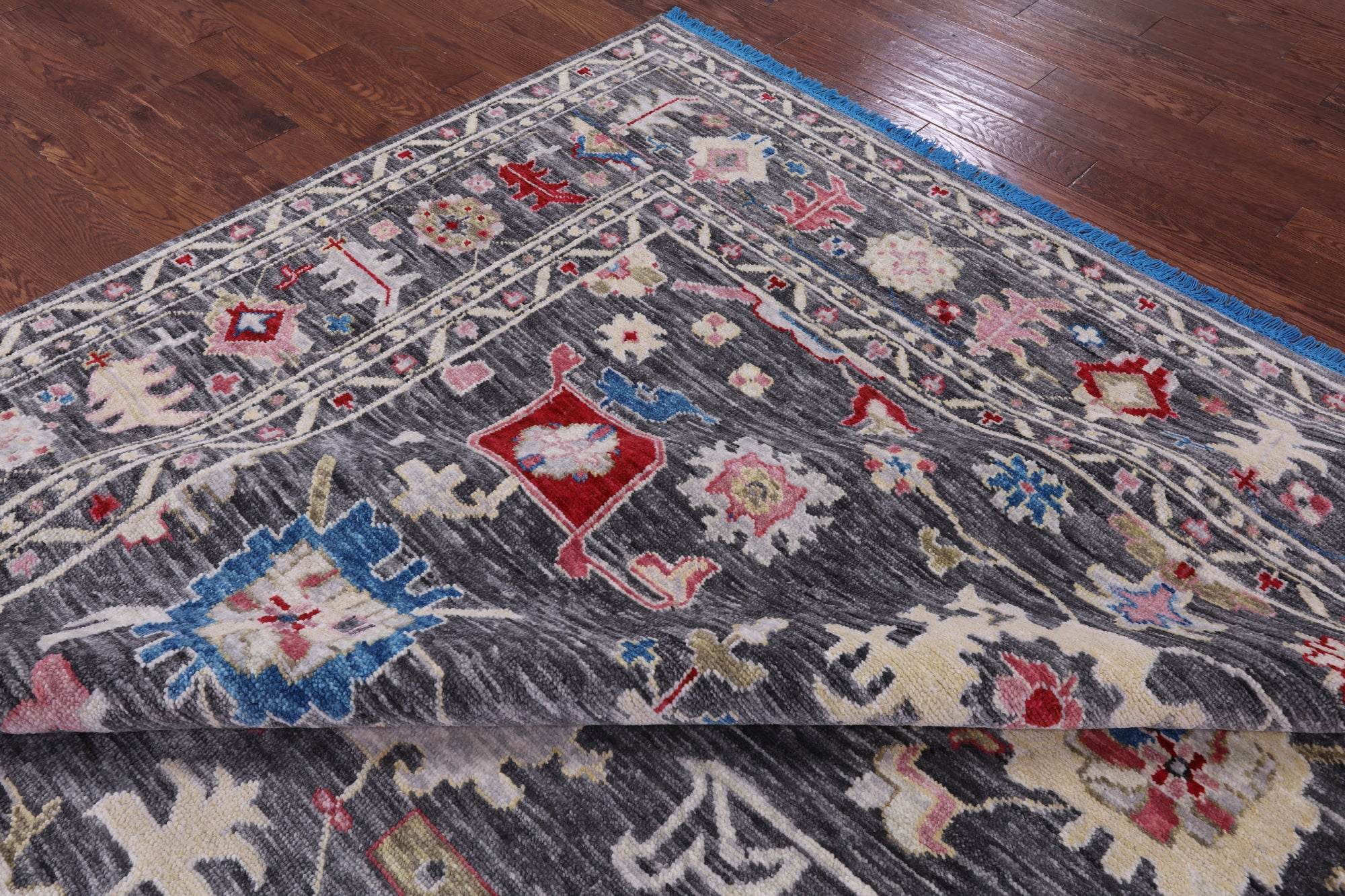 Oushak Rugs are distinctive in both pattern and color palette. Most have a blue, green, dark ivory, or gold & their designs are typically based on geometric motifs and vine / leave motifs. All colors are created with natural vegetable dyes, and the hushed tones are enhanced by the soft, lustrous wool texture. The foundation of an Oushak is cotton while the pile is wool. Oushak rugs are also double-knotted for durability.