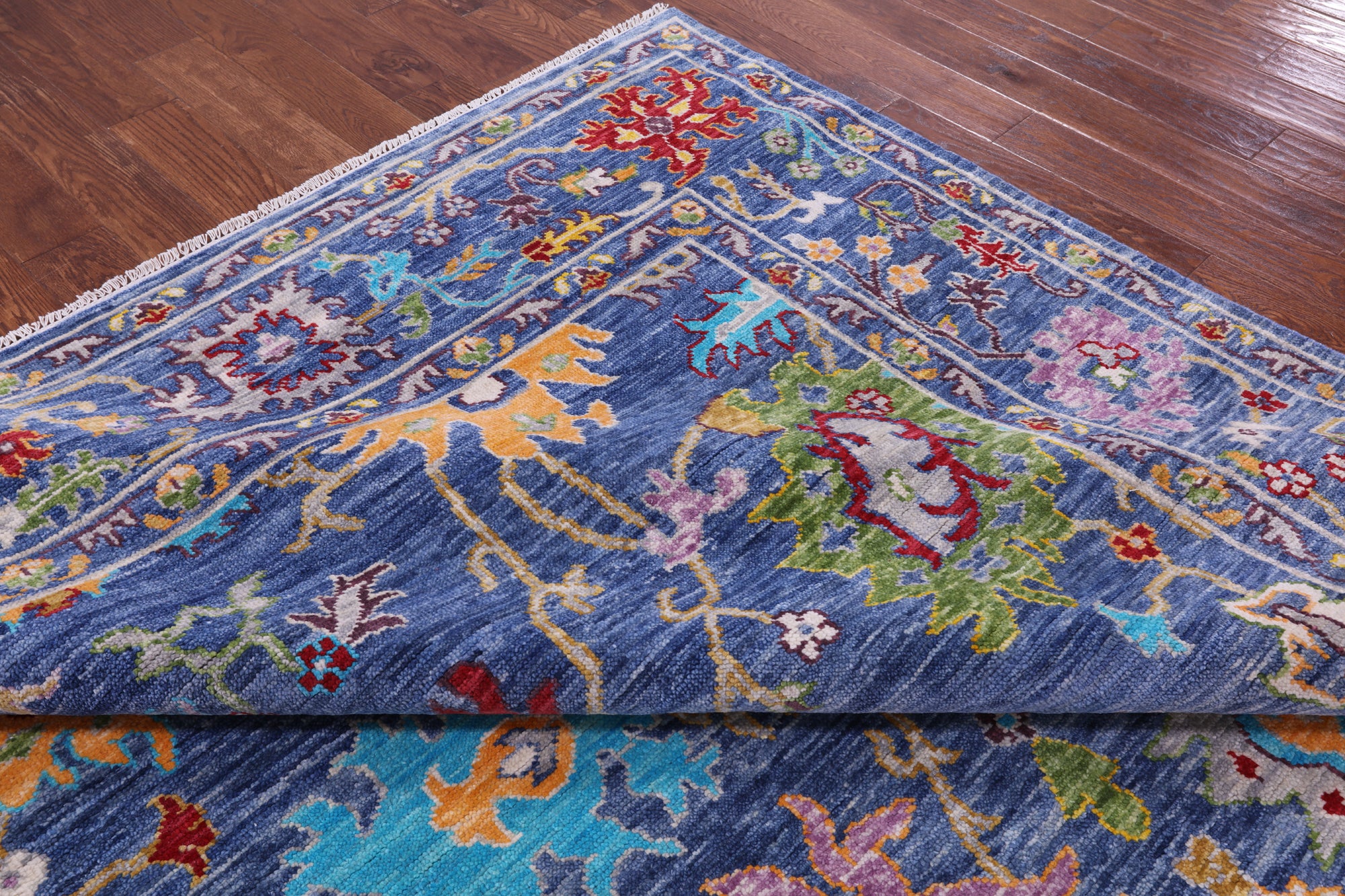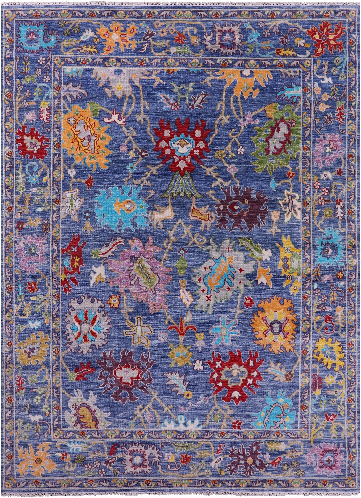 Oushak Rugs are distinctive in both pattern and color palette. Most have a blue, green, dark ivory, or gold & their designs are typically based on geometric motifs and vine / leave motifs. All colors are created with natural vegetable dyes, and the hushed tones are enhanced by the soft, lustrous wool texture. The foundation of an Oushak is cotton while the pile is wool. Oushak rugs are also double-knotted for durability.