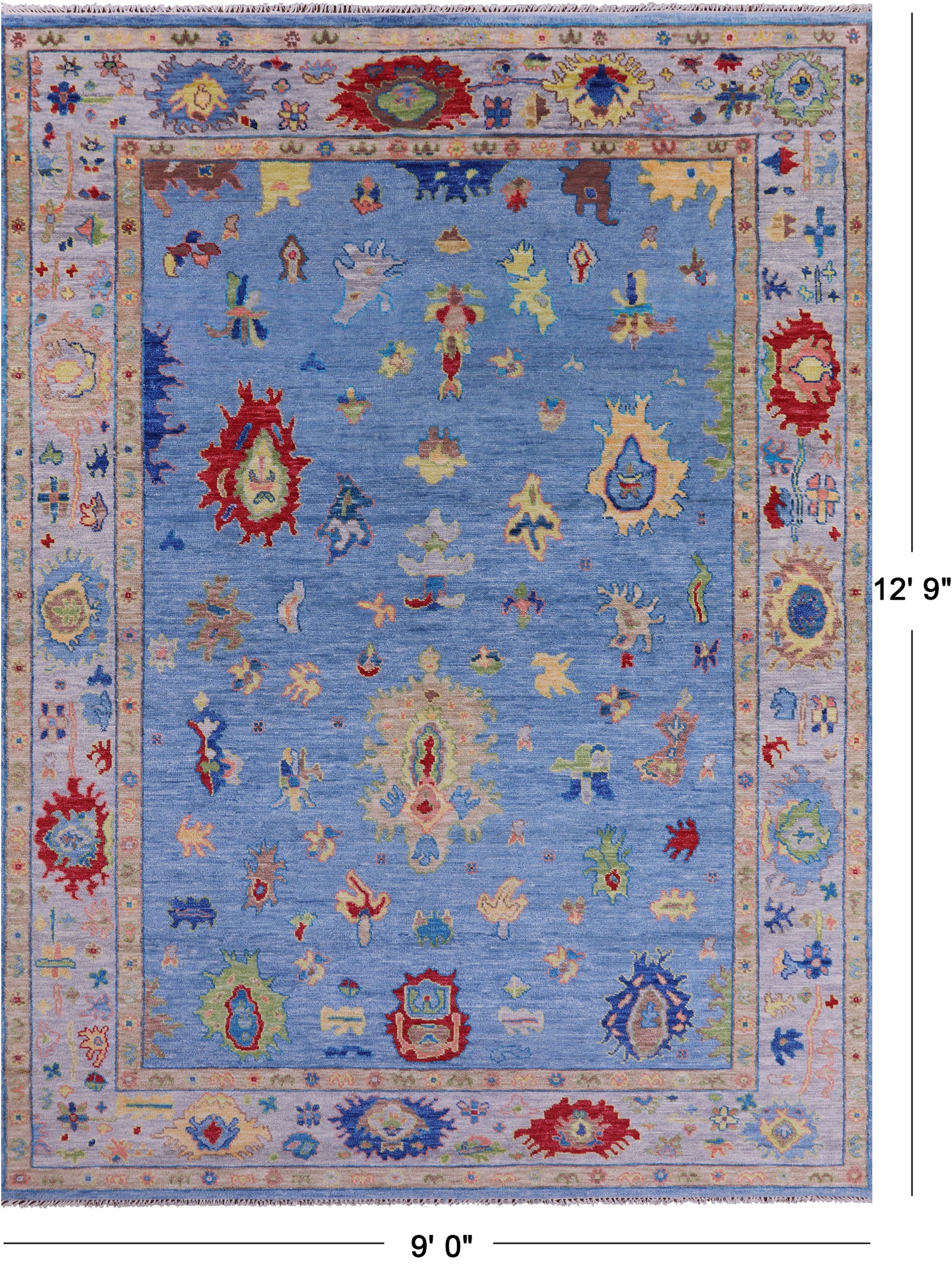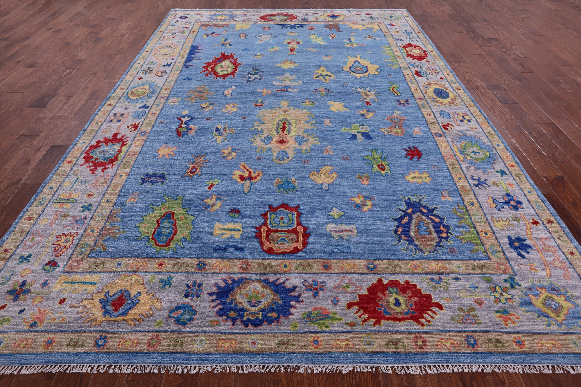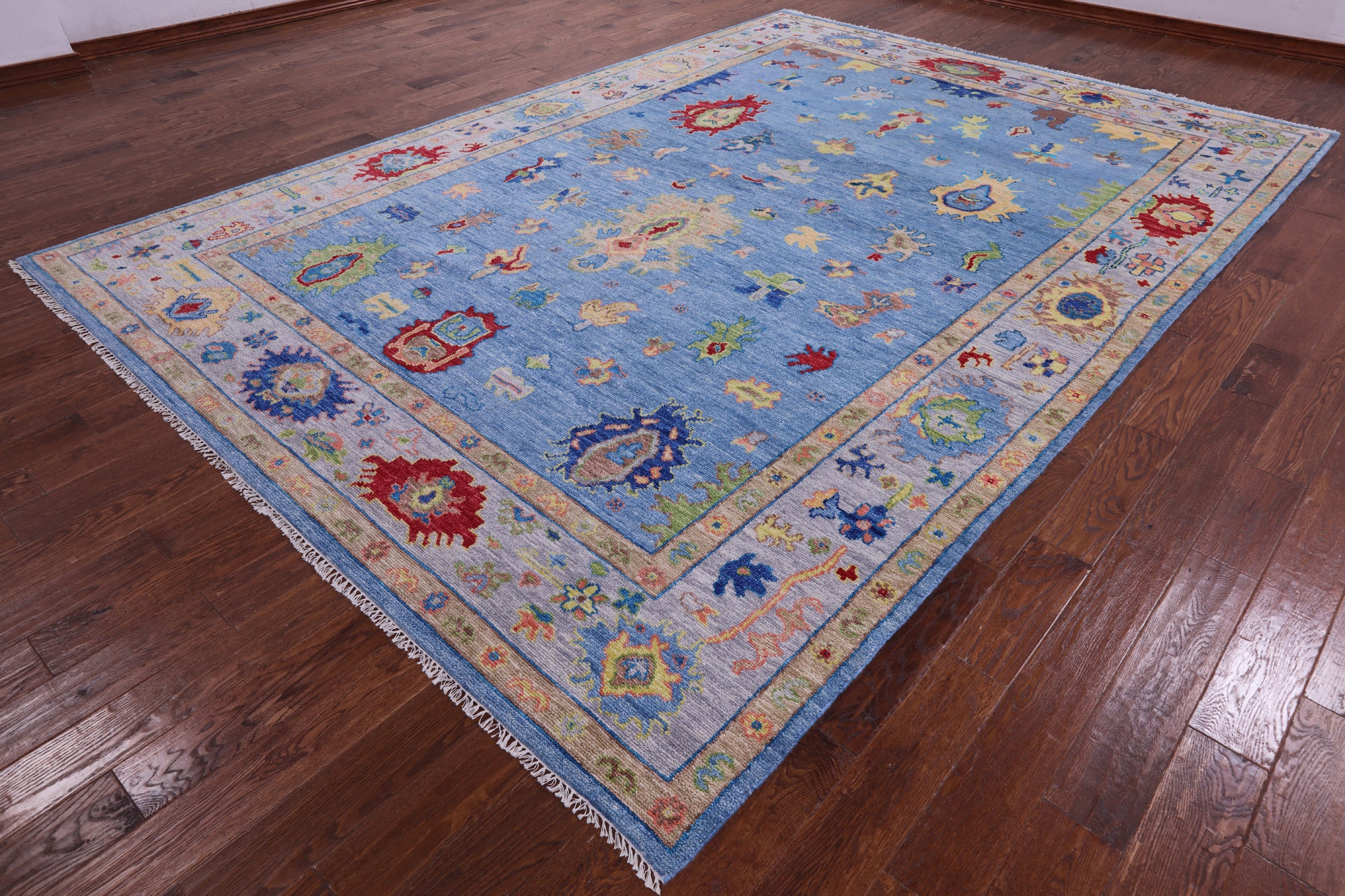 Blue Turkish Oushak Hand Knotted Wool Rug - 9' 0" X 12' 9"