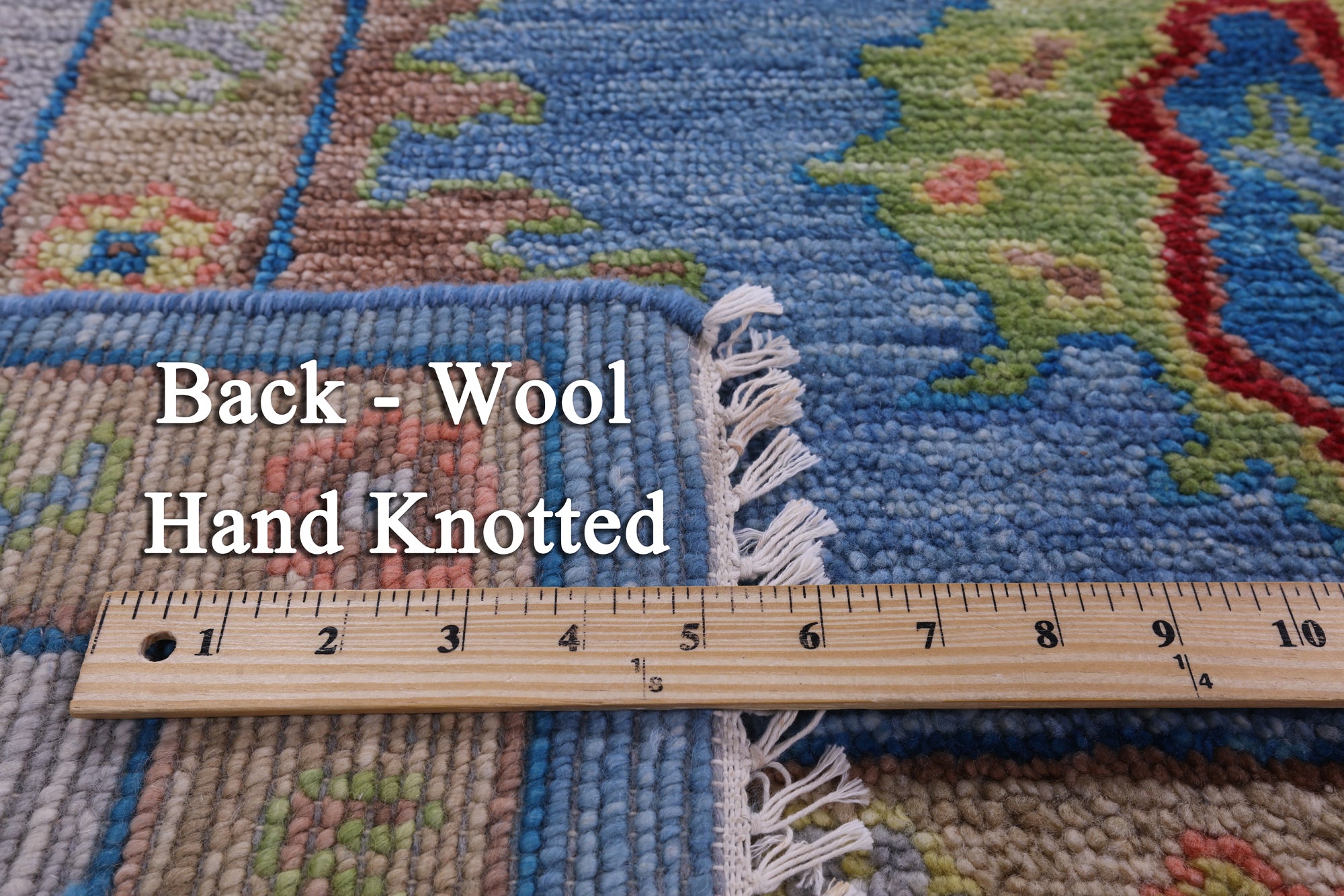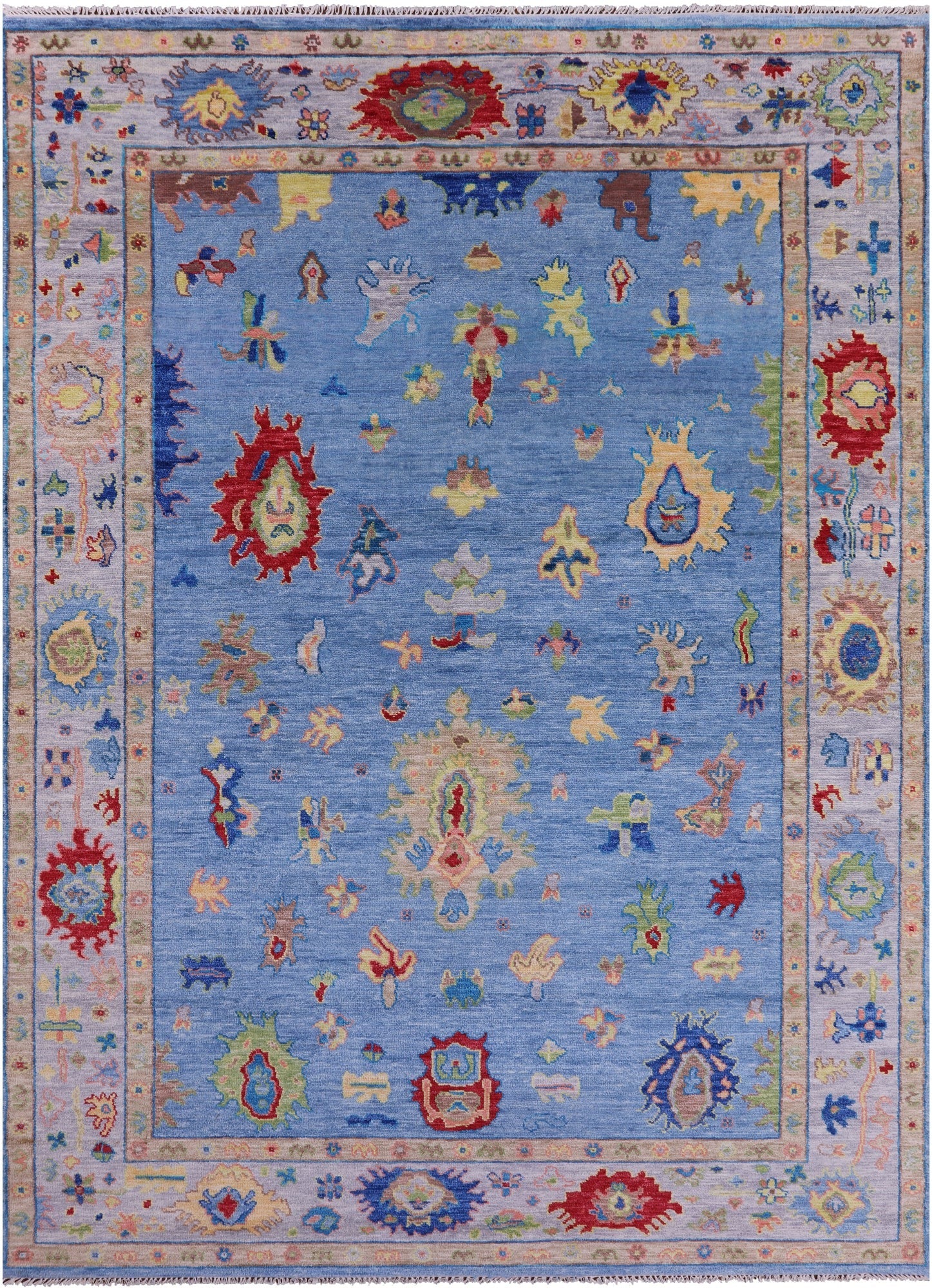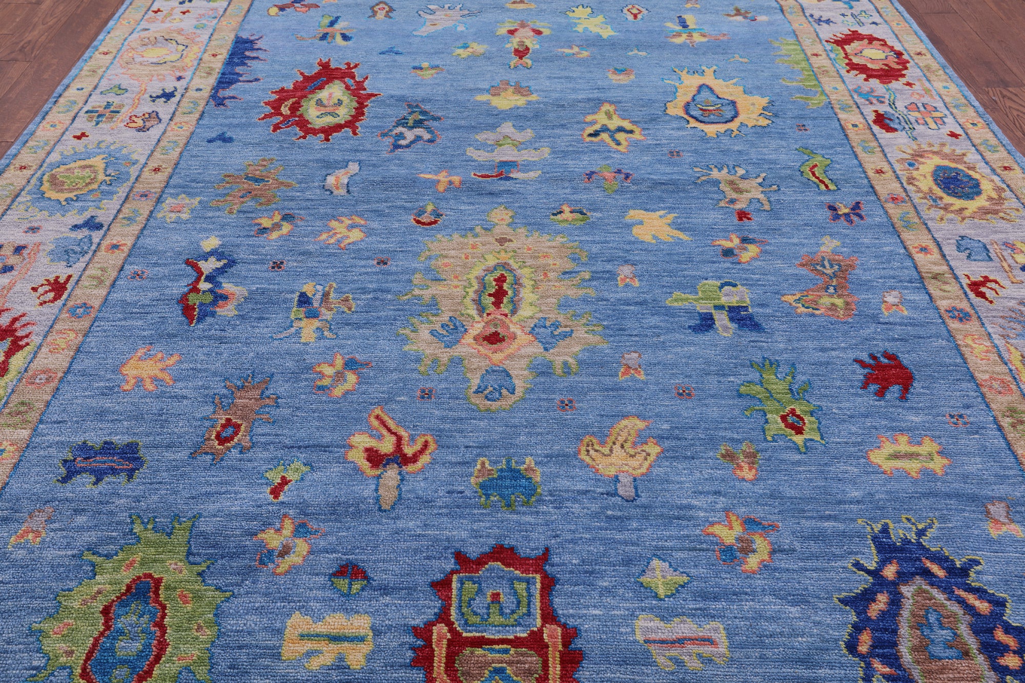 Blue Turkish Oushak Hand Knotted Wool Rug - 9' 0" X 12' 9"