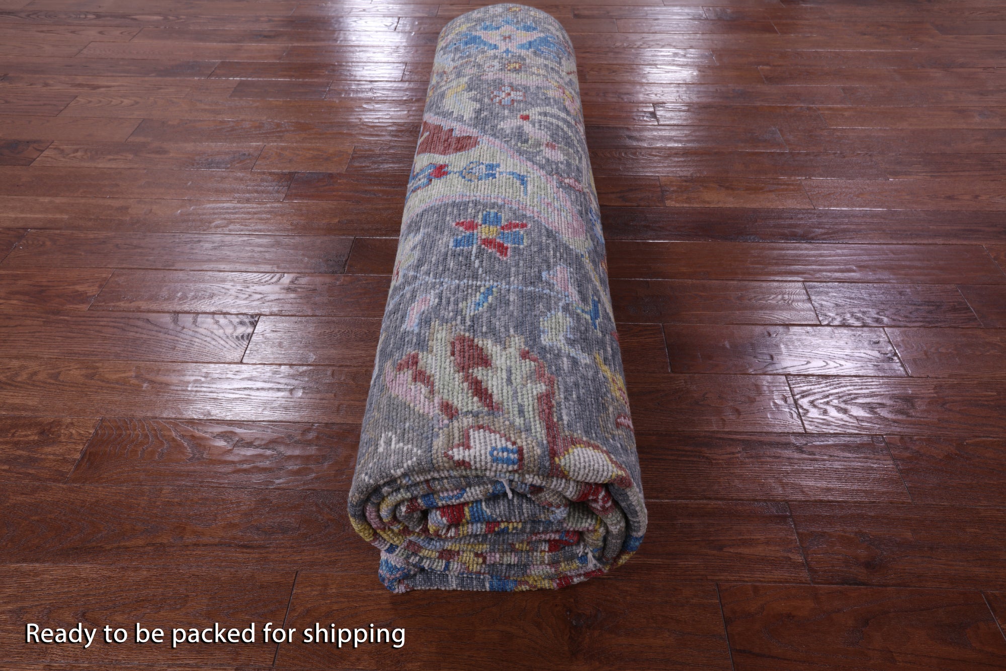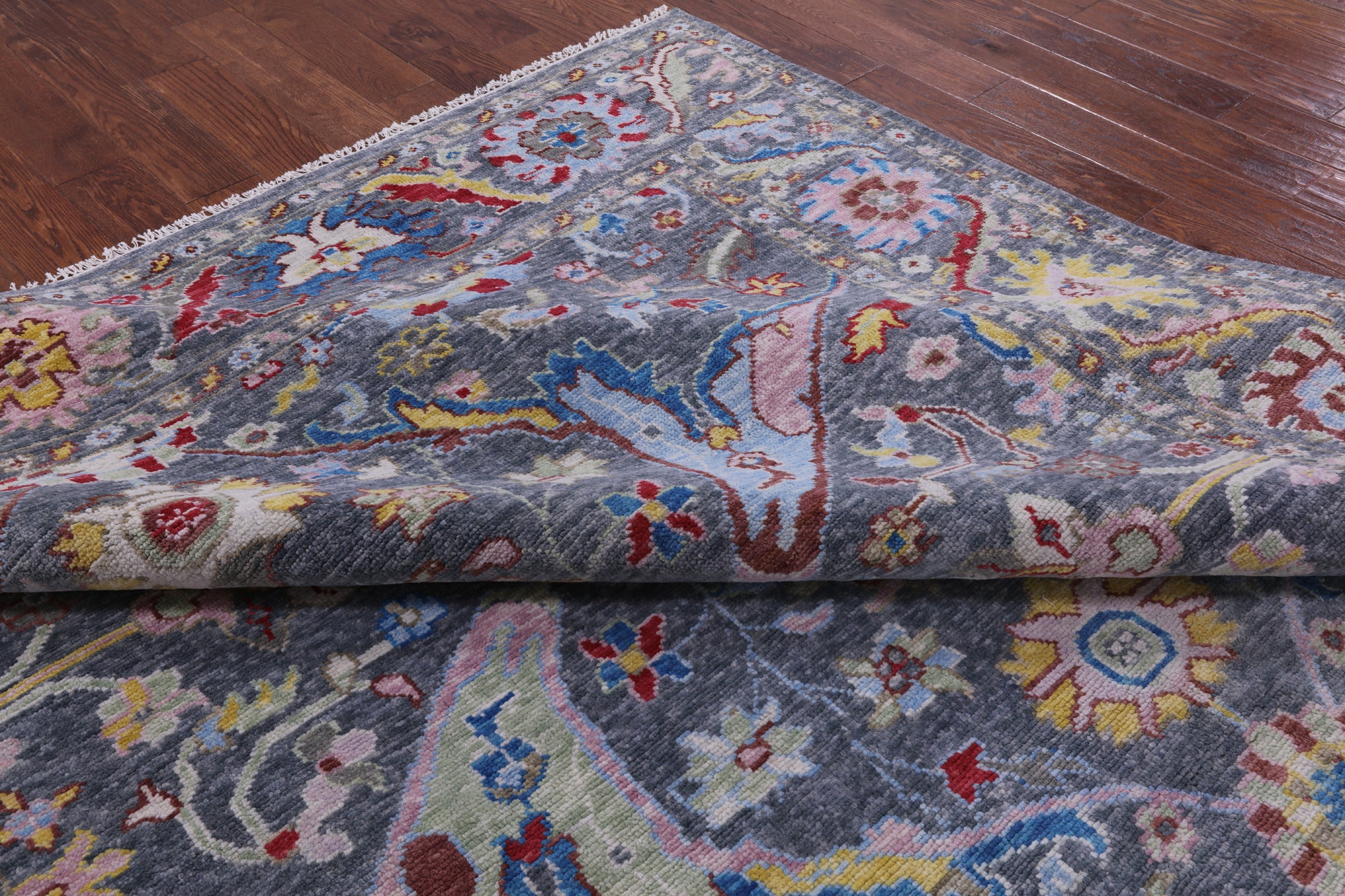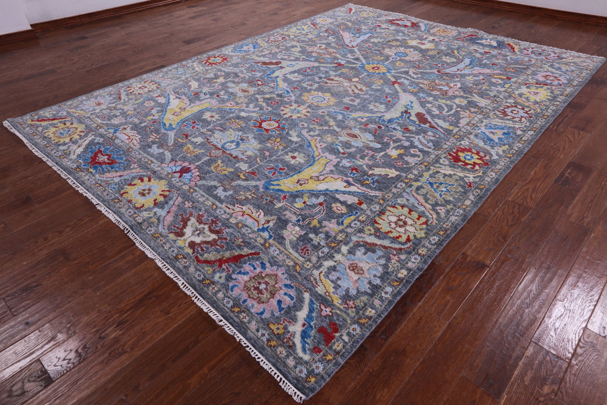 Grey Turkish Oushak Hand Knotted Wool Rug - 9' 1" X 12' 6"