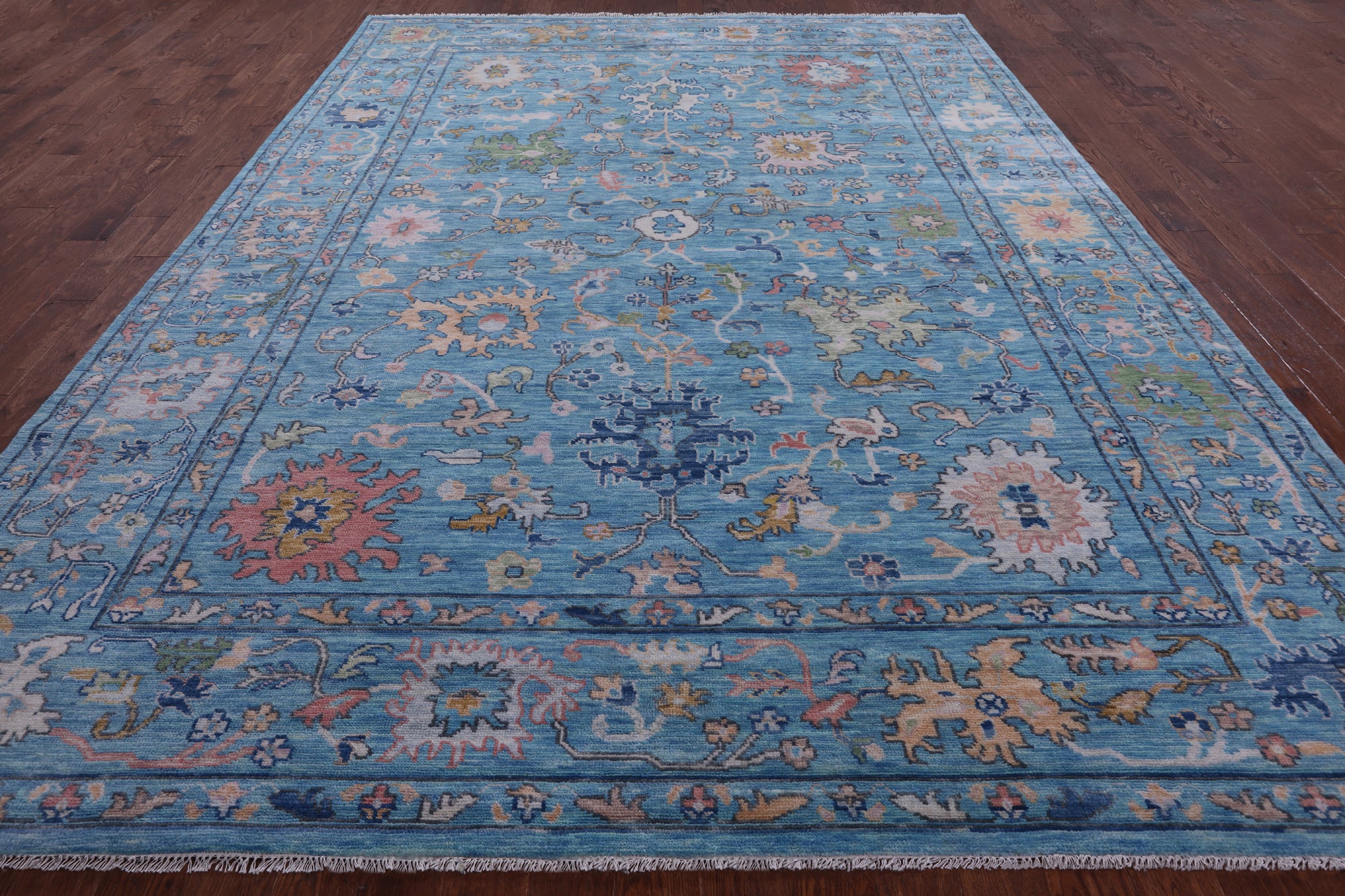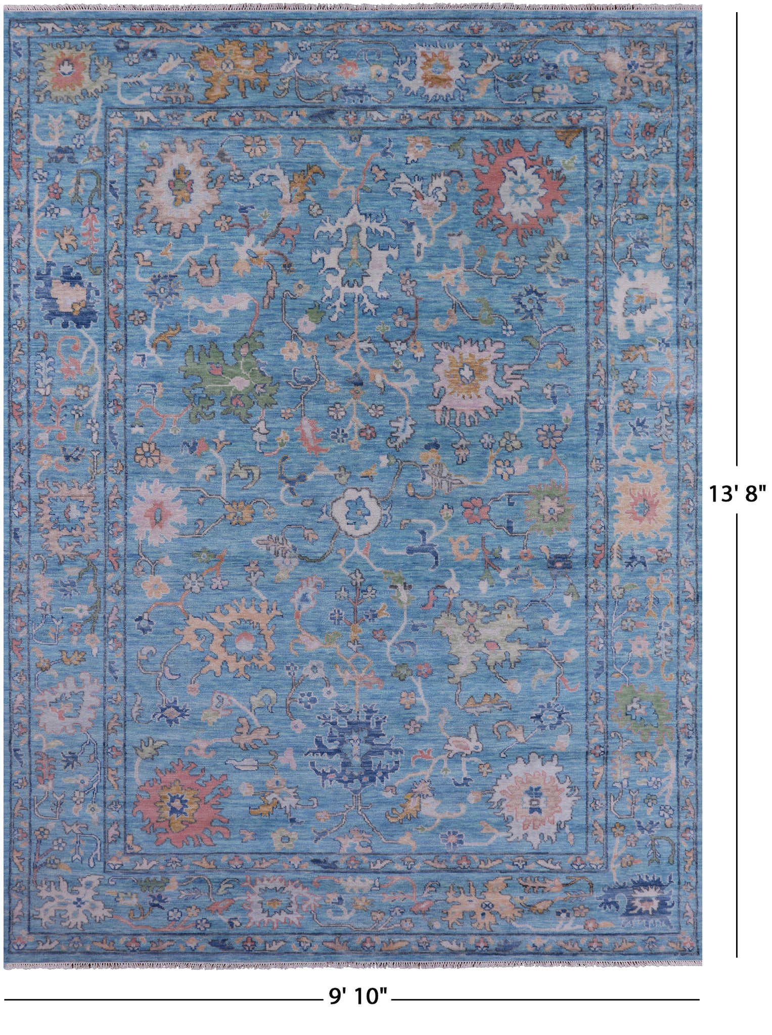 Blue Turkish Oushak Hand Knotted Wool Rug - 9' 10" X 13' 8"
