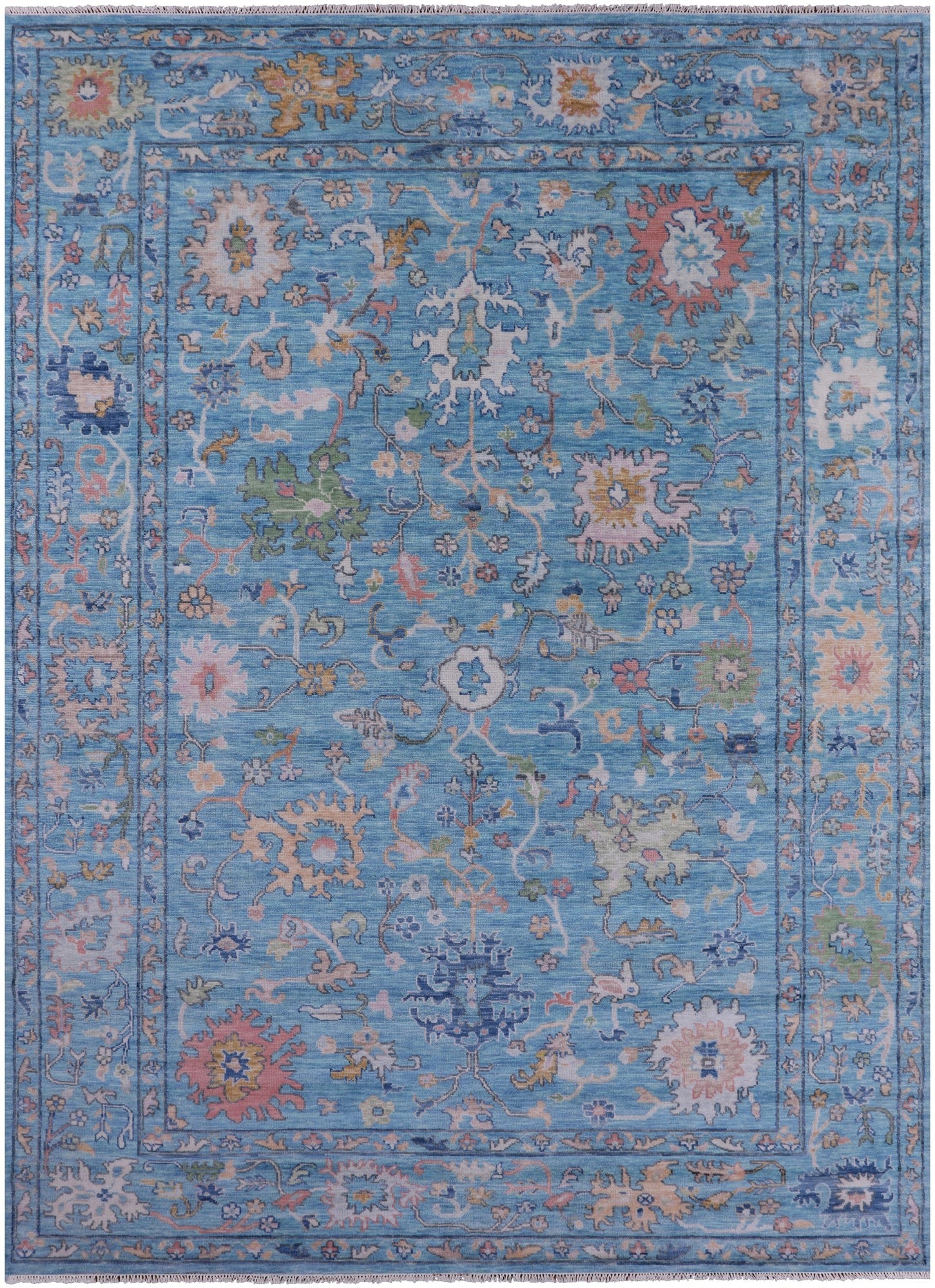 An Oushak handmade rug is a work of art from the Oushak region in Turkey. With intricate designs and vibrant colors, Oushak rugs are crafted by skilled artisans using top-quality materials like wool or silk. Their soft, lustrous pile adds a touch of elegance and comfort to any space. Oushak hand knotted rugs seamlessly fit into various interior styles, from classic to contemporary, and are cherished as both decor and cultural treasures. These rugs are a testament to timeless craftsmanship, making them a valuable addition to any home.