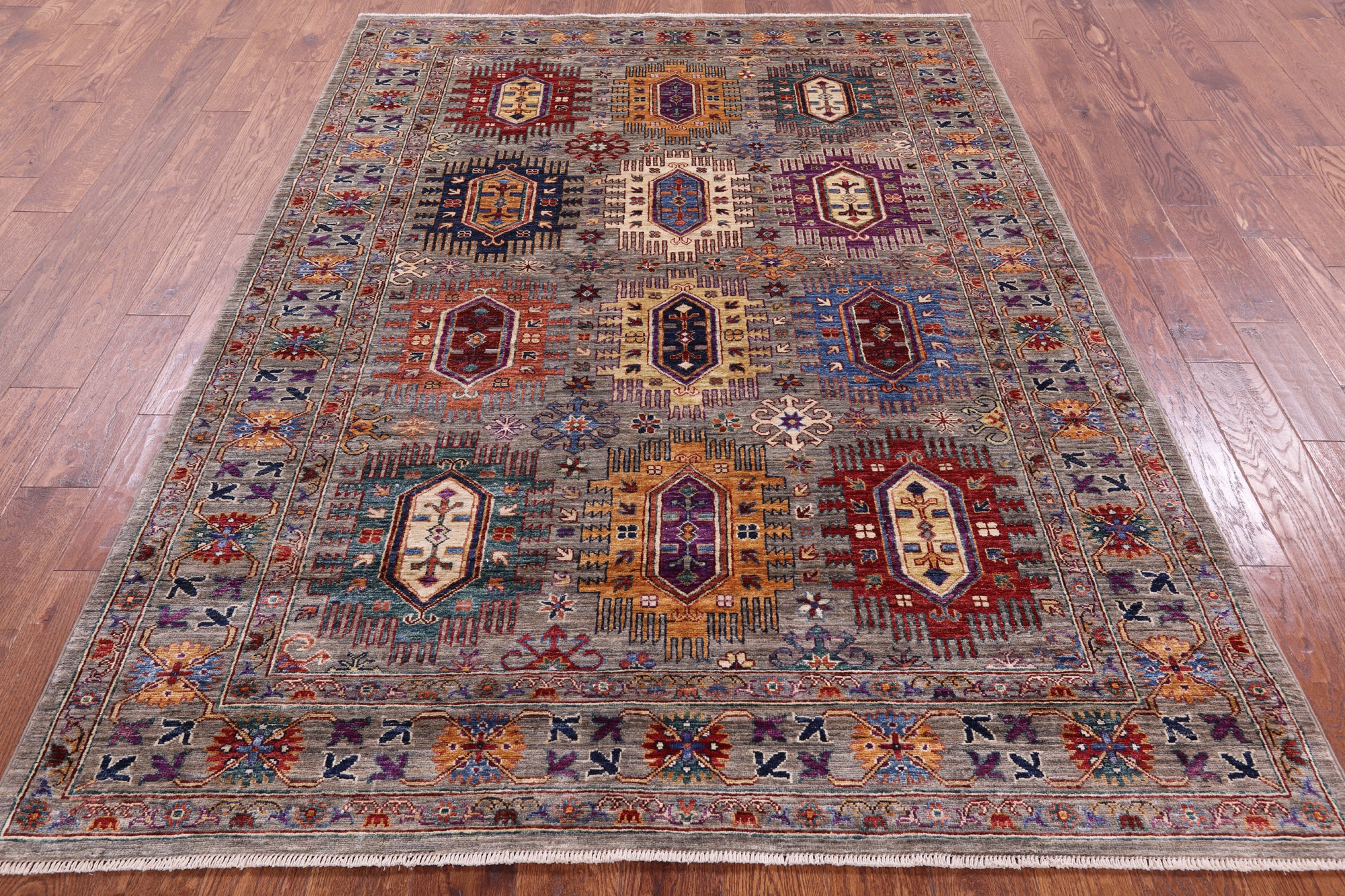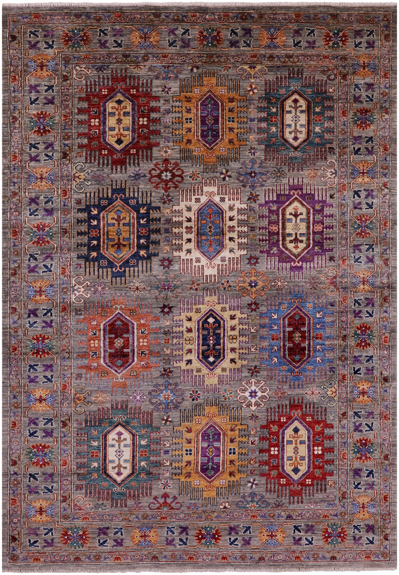 These tribal inspired rugs originated in central Asia, and are distinctive for their dominating color scheme with dark reds, blues, black and at times ivory. These rugs do tend to be small or midsized and have soft wool, but have a hard pile that is cut thin, which makes them quite durable. Turkman rugs are the finest of the tribal rugs that have been produced to date.