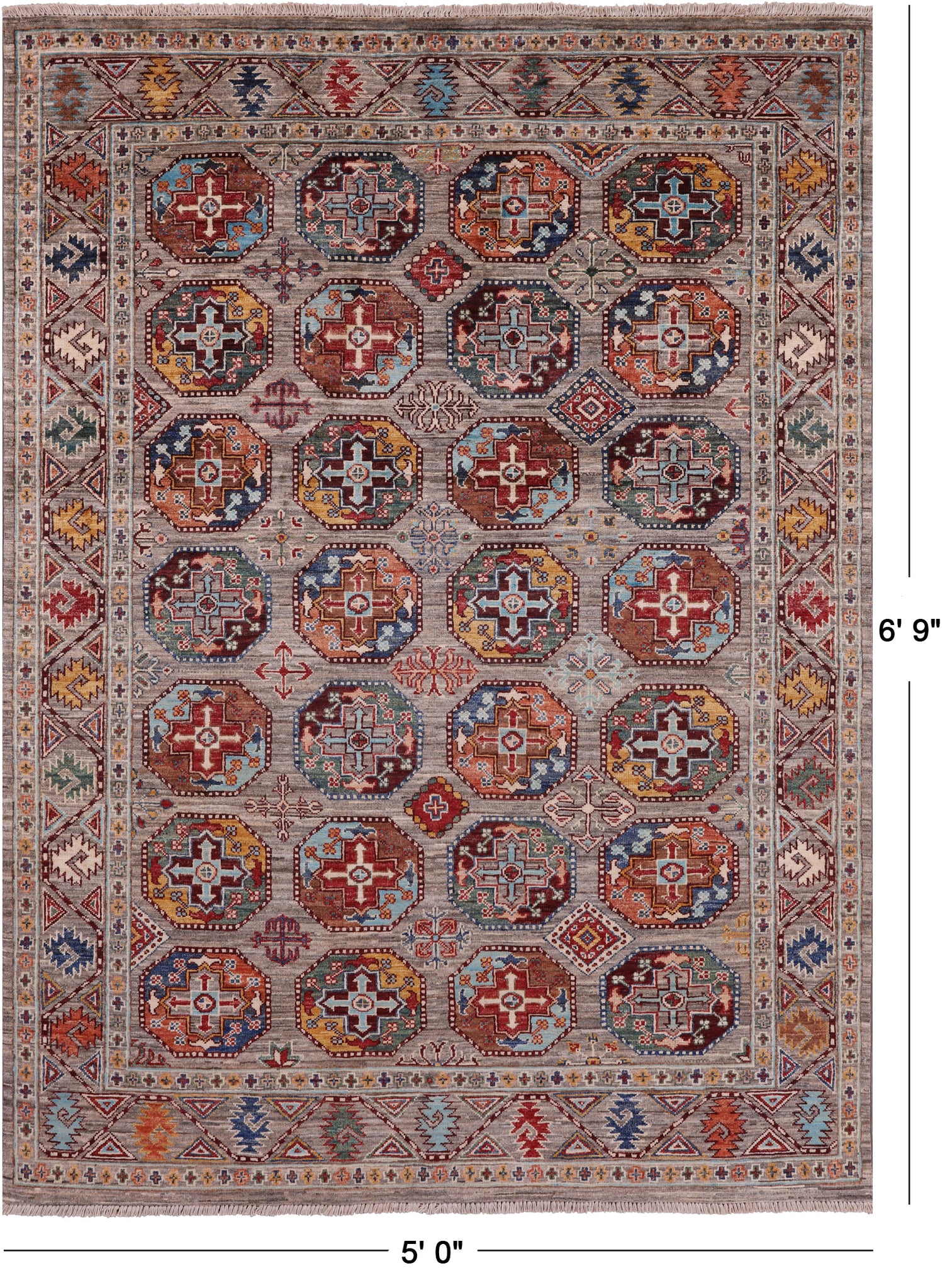 Turkmen Ersari Handmade Wool Rug - 5' 0" X 6' 9"