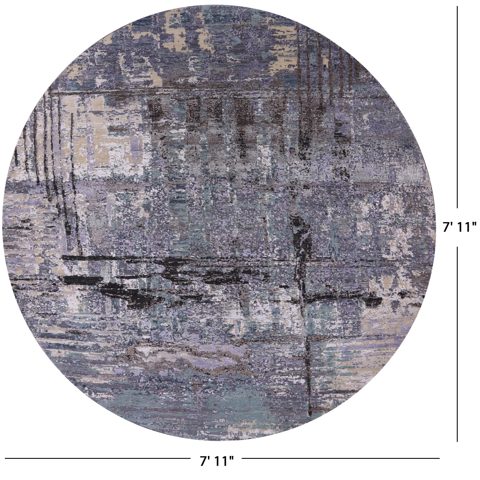 Round Contemporary Handmade Wool & Silk Rug - 7' 11" X 7' 11"