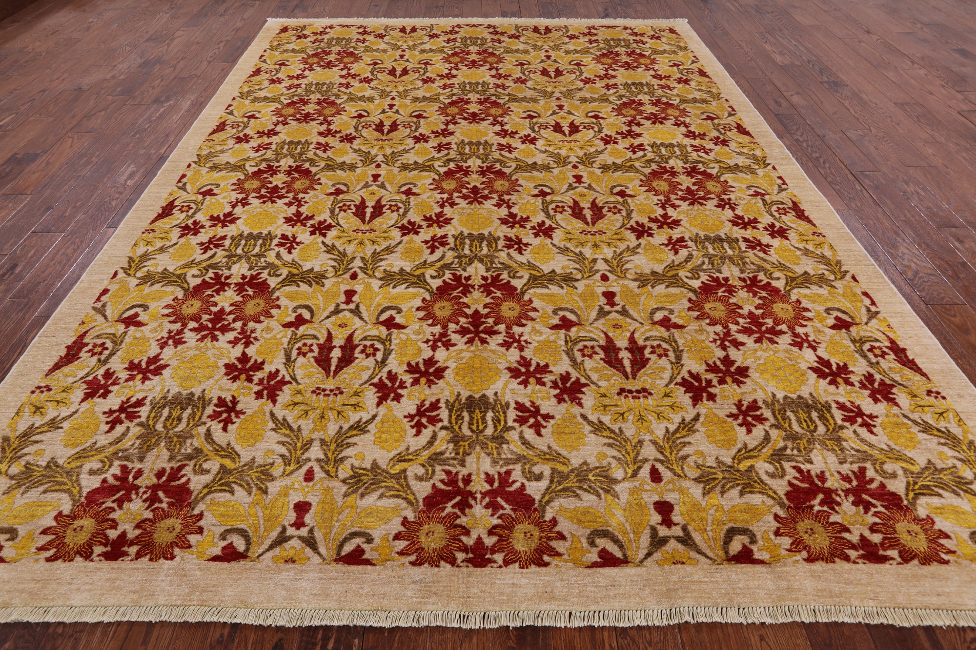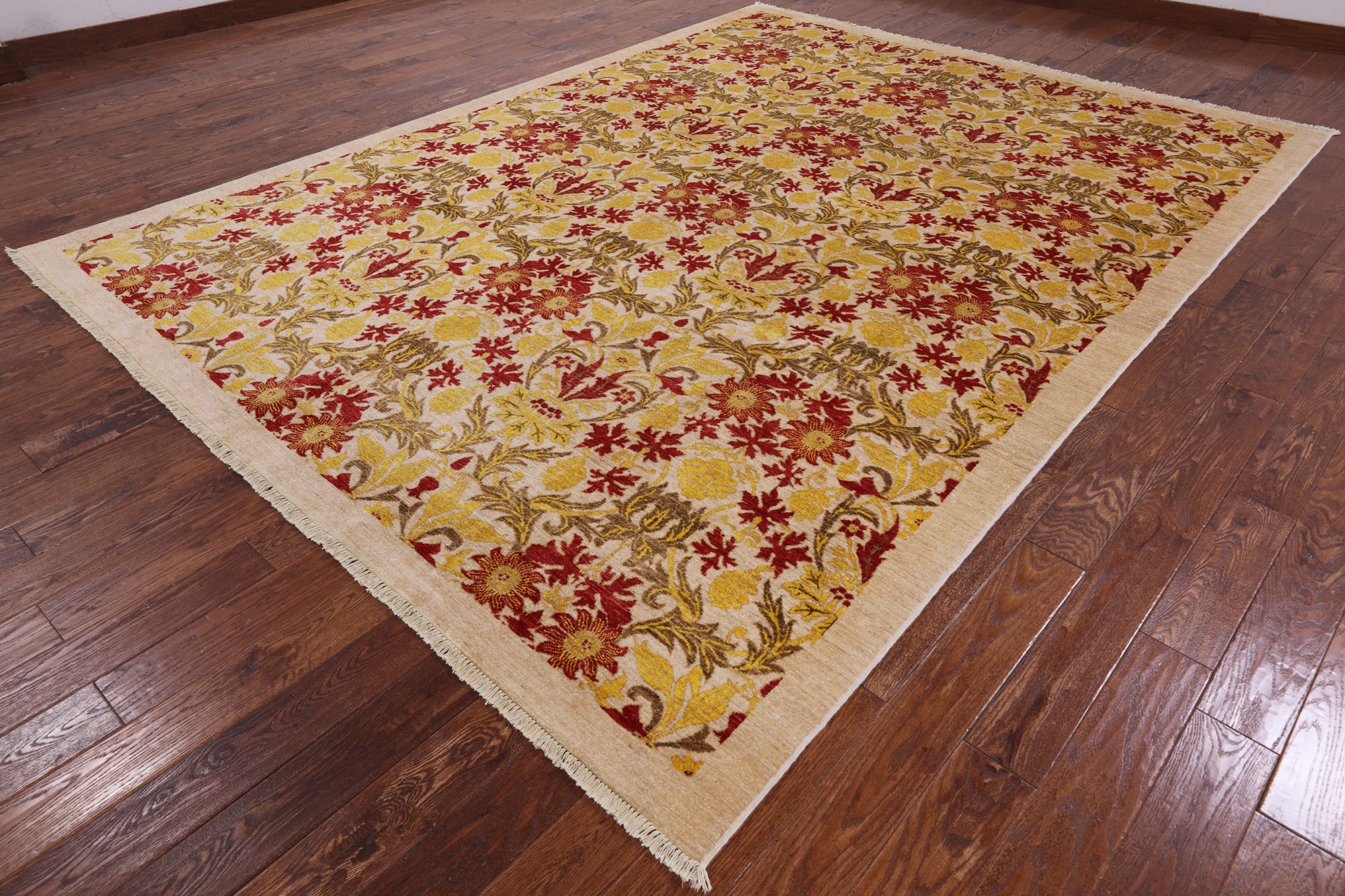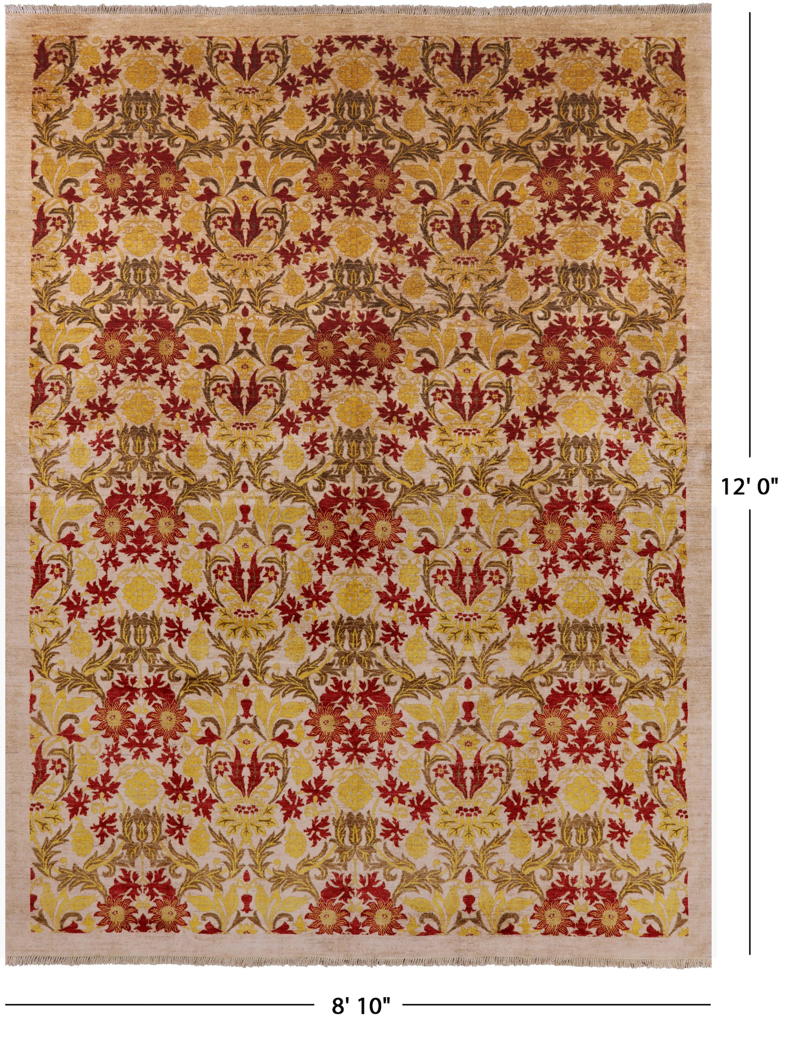 Ivory William Morris Handmade Wool Area Rug - 8' 10" X 12' 0"