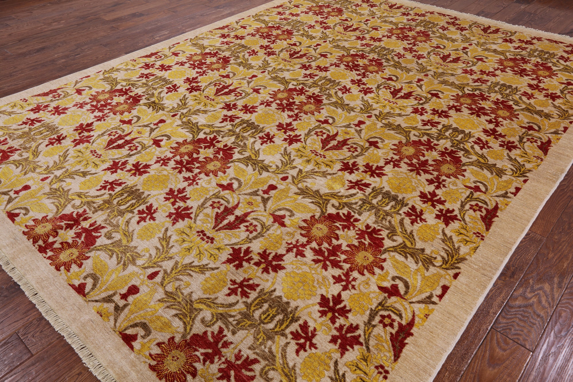 William Morris designs are inspired by the beauty of nature. Among them are willow trees, ginkgo leaves, thistles, meadow, floral details enhanced with vine and leaf accents. William Morris rugs are woven with high quality of wool, silk or both using bright colors.