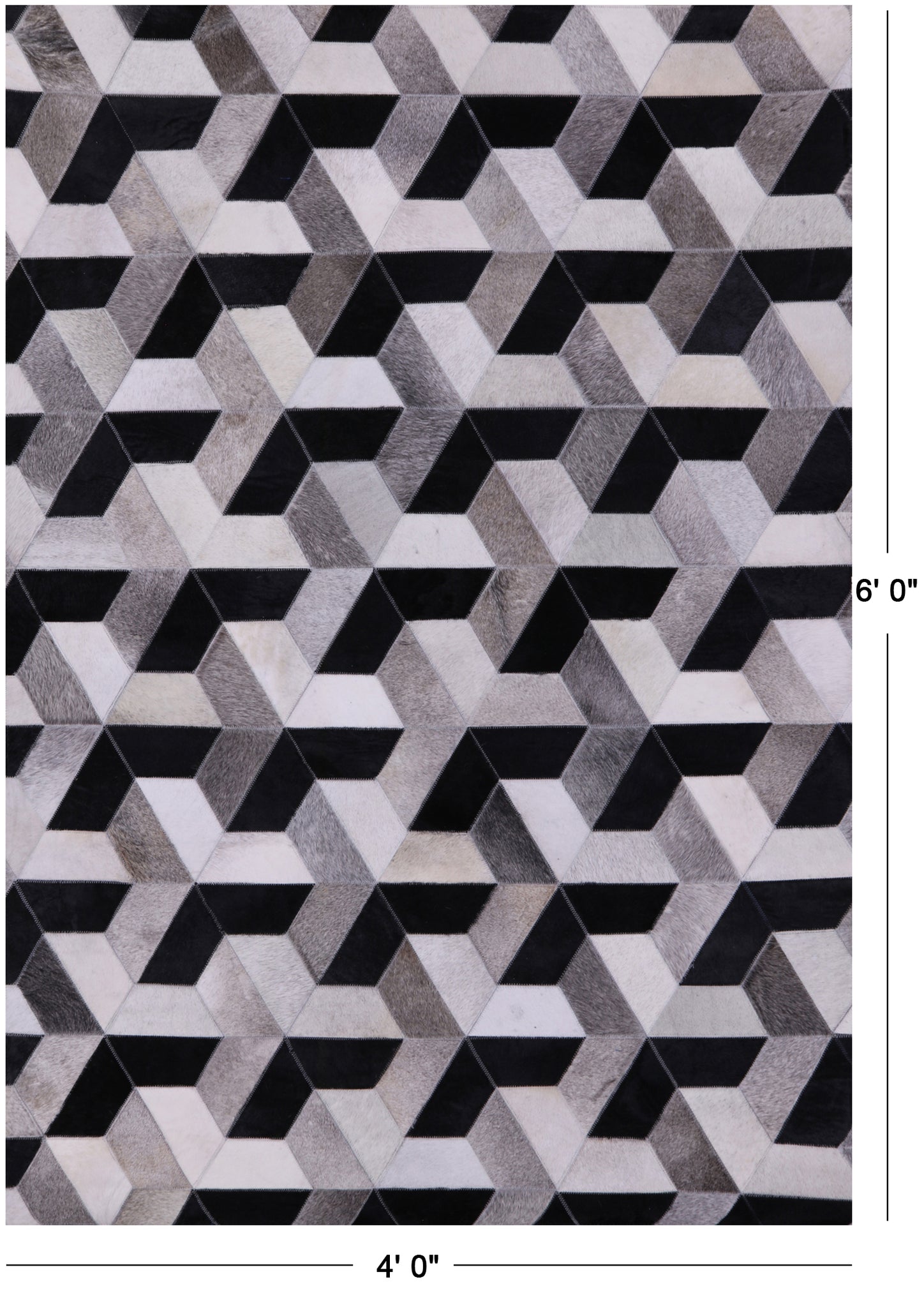 Natural Cowhide Hand Stitched Patchwork Rug - 4' 0" X 6' 0"