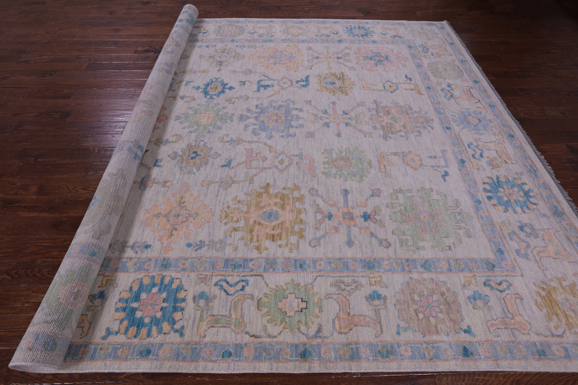 Ivory Turkish Oushak Hand Knotted Wool Rug - 10' 1" X 14' 0"