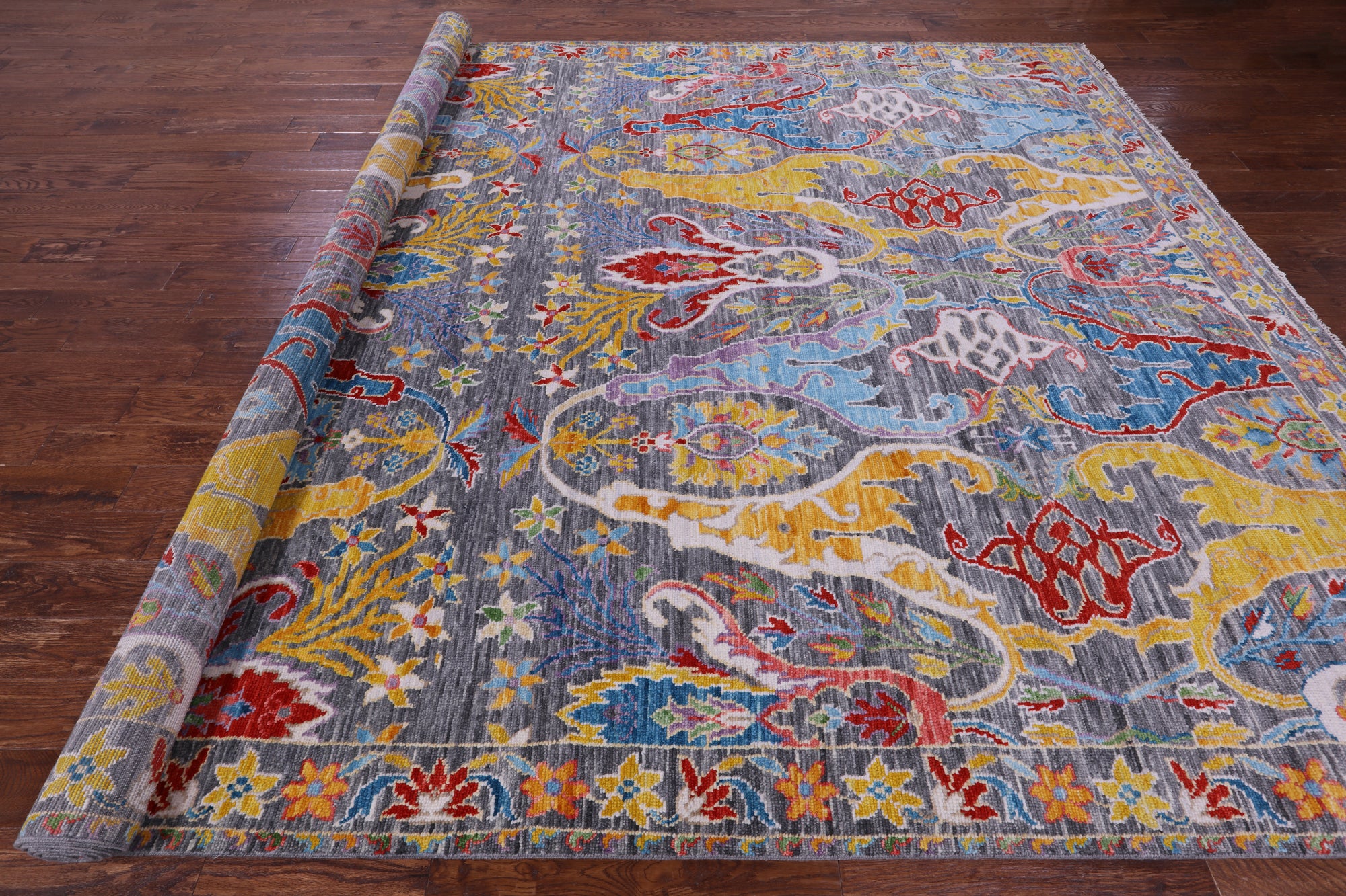 Grey Turkish Oushak Hand Knotted Wool Rug - 10' 2" X 13' 11"