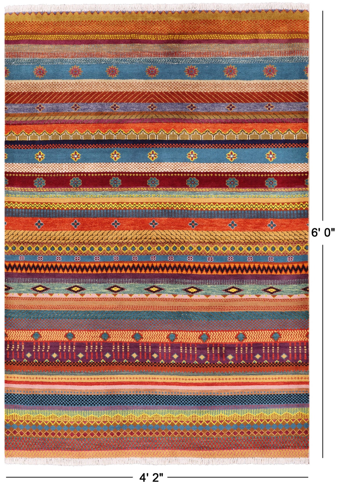 Persian Gabbeh Tribal Handmade Wool Rug - 4' 2" X 6' 0"