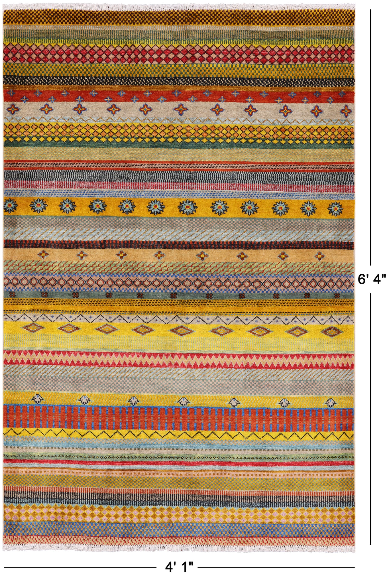 Persian Gabbeh Handmade Wool Rug - 4' 1" X 6' 4"