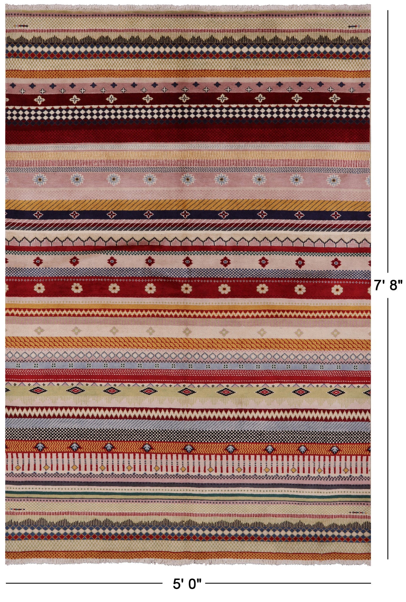 Tribal Persian Gabbeh Hand Knotted Wool Rug - 5' 0" X 7' 8"