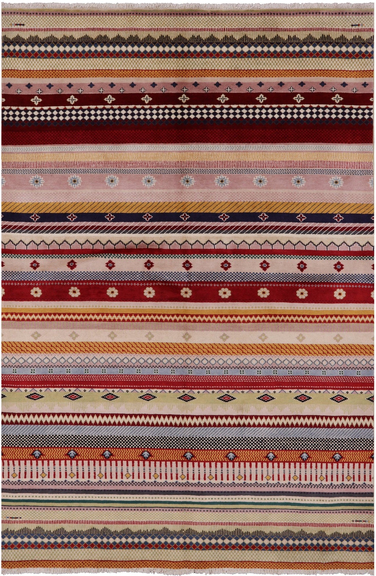 Gabbeh Rugs feature hand-spun wool in both the pile and foundation. These rugs are characterized by their abstract designs that relies upon open fields of color and a playfulness with geometric figures used to depict a story, person, or event. Gabbeh Rugs are popular in a contemporary or modern setting and are extremely durable, usually small to medium size.