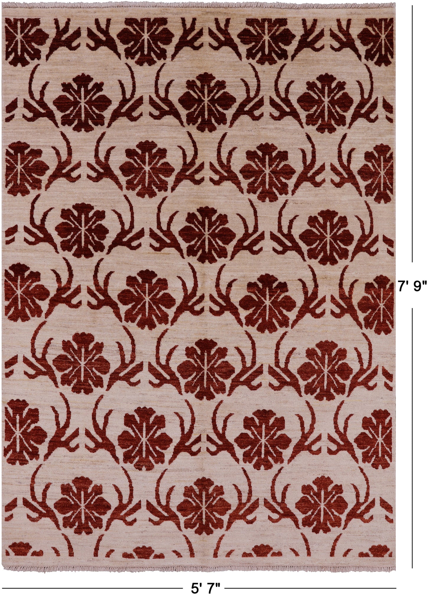 Ivory Tribal Gabbeh Handmade Rug - 5' 7" X 7' 9"