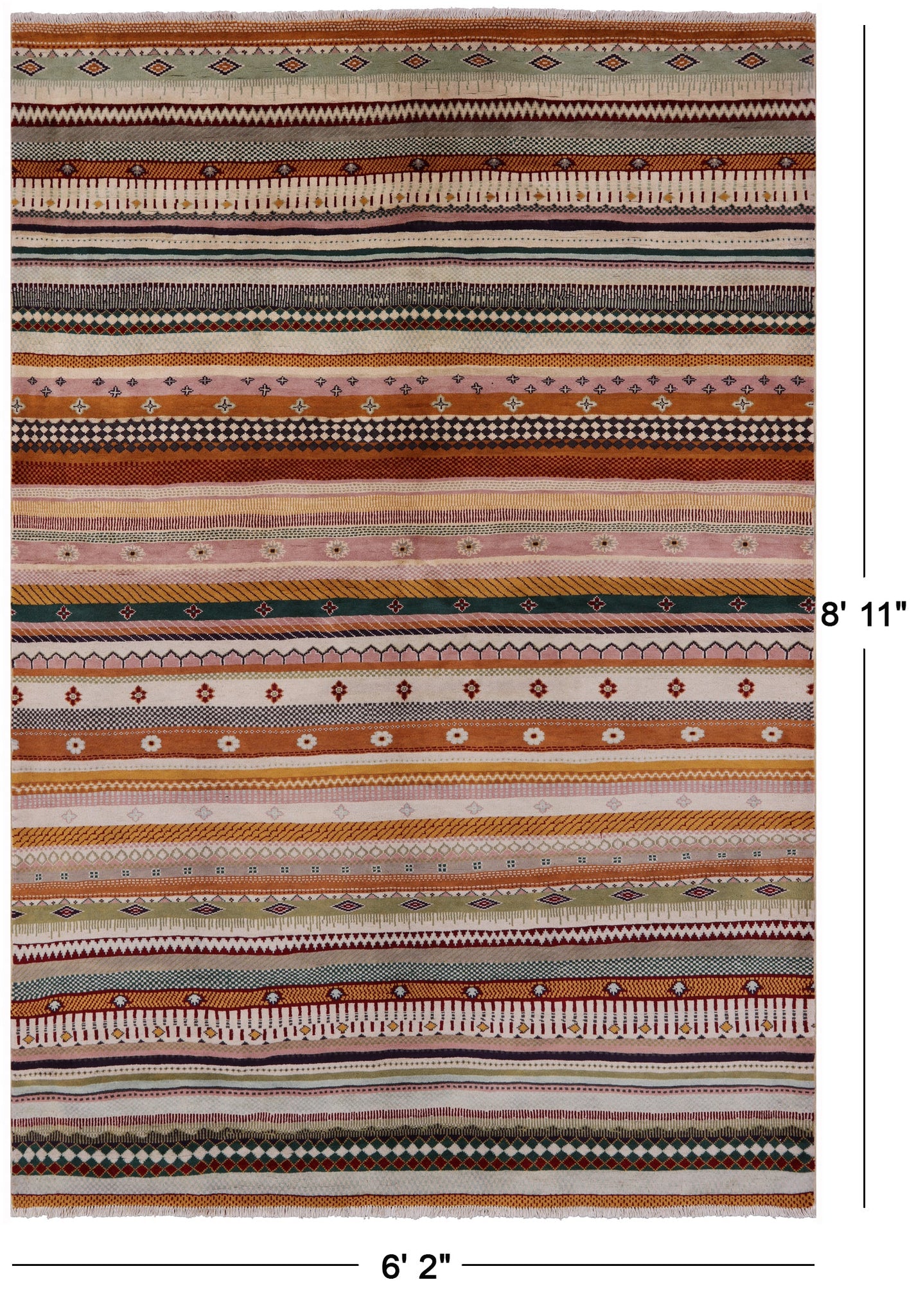 Tribal Persian Gabbeh Handmade Wool Rug - 6' 2" X 8' 11"