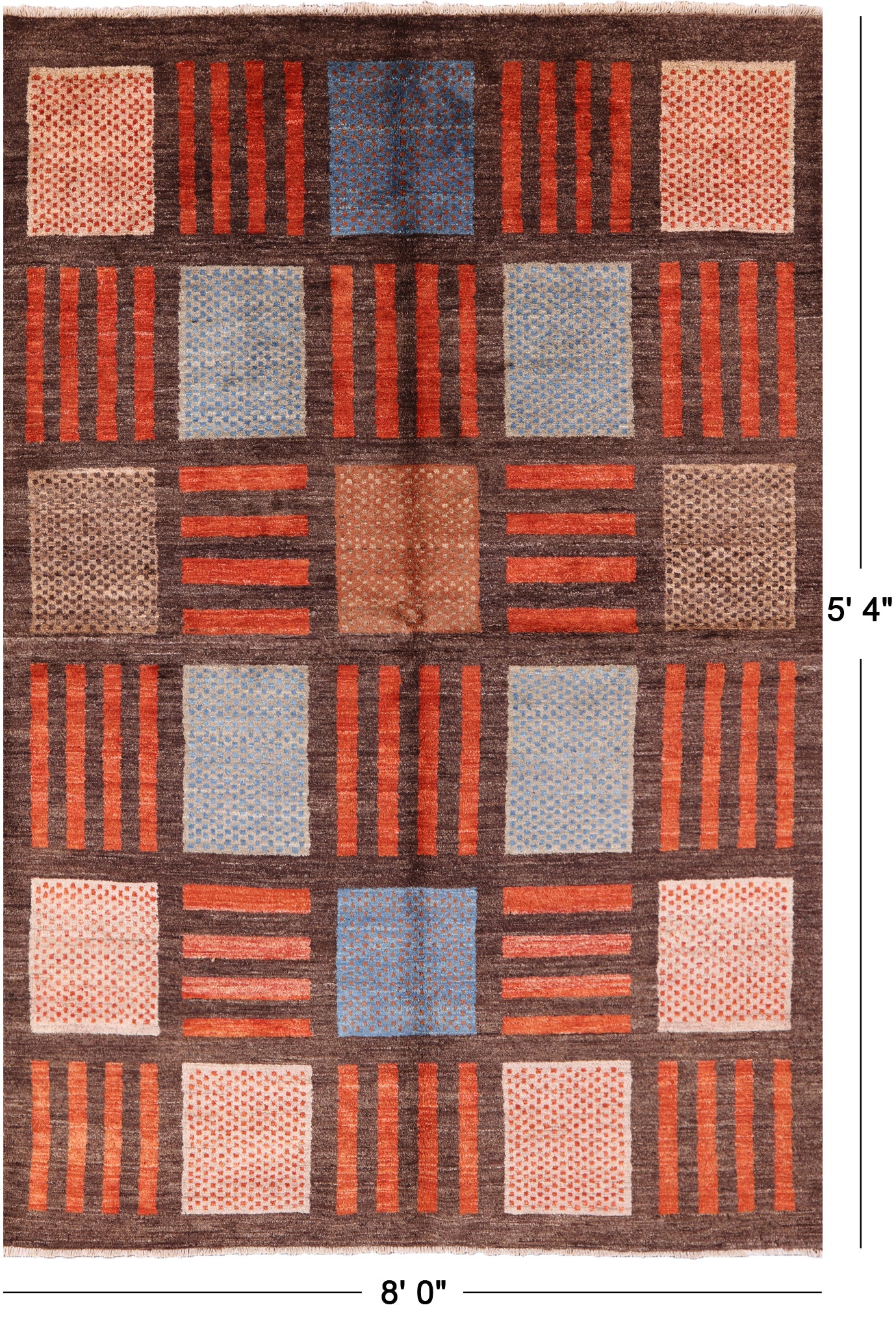 Brown Tribal Gabbeh Hand Knotted Wool Area Rug - 5' 4" X 8' 0"