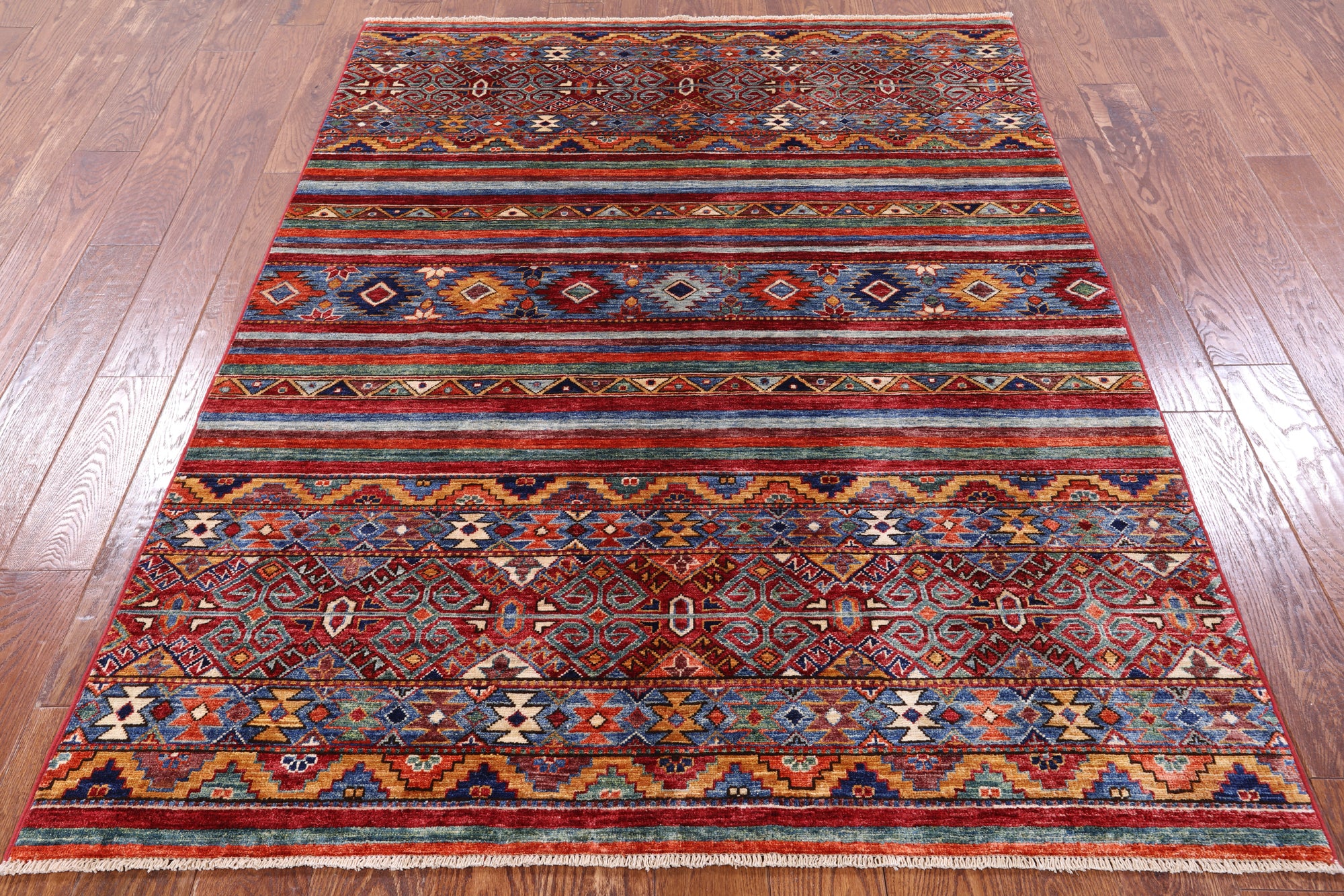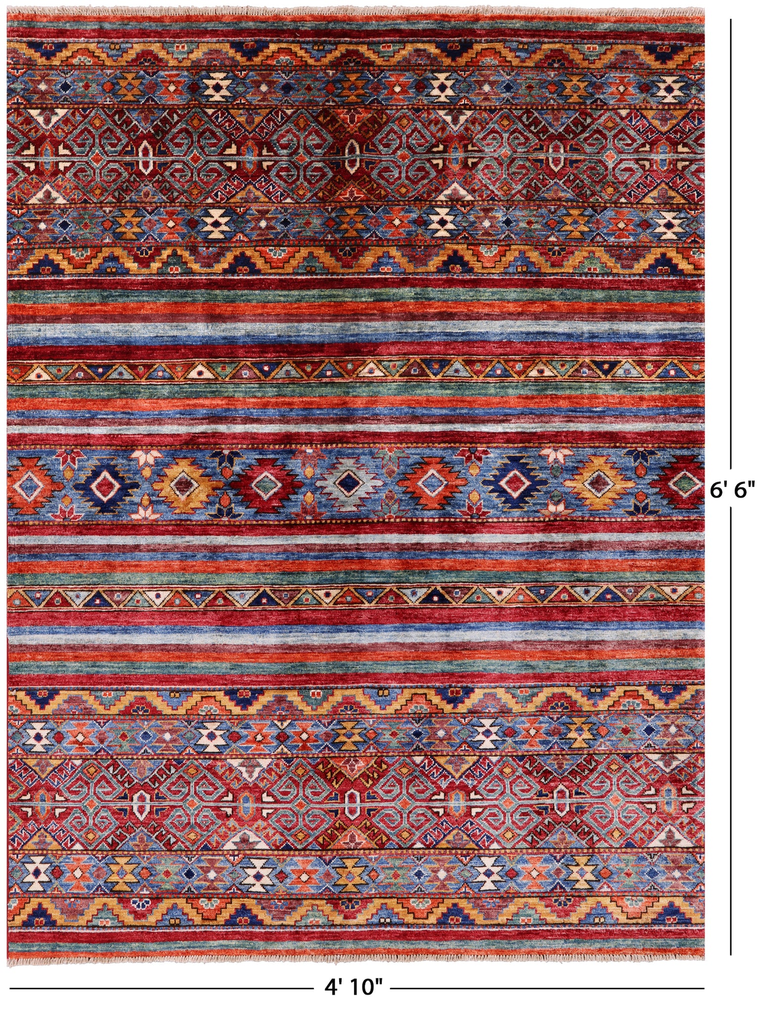 Khorjin Persian Gabbeh Hand Knotted Wool Rug - 4' 10" X 6' 6"
