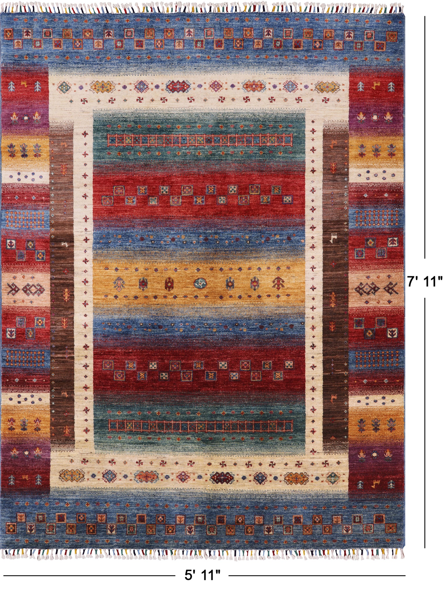 Tribal Persian Gabbeh Hand Knotted Wool Rug - 5' 11" X 7' 11"