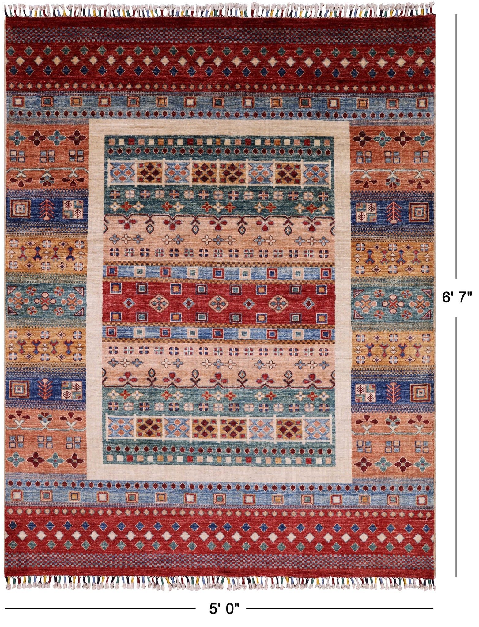 Tribal Persian Gabbeh Hand Knotted Wool Rug - 5' 0" X 6' 7"