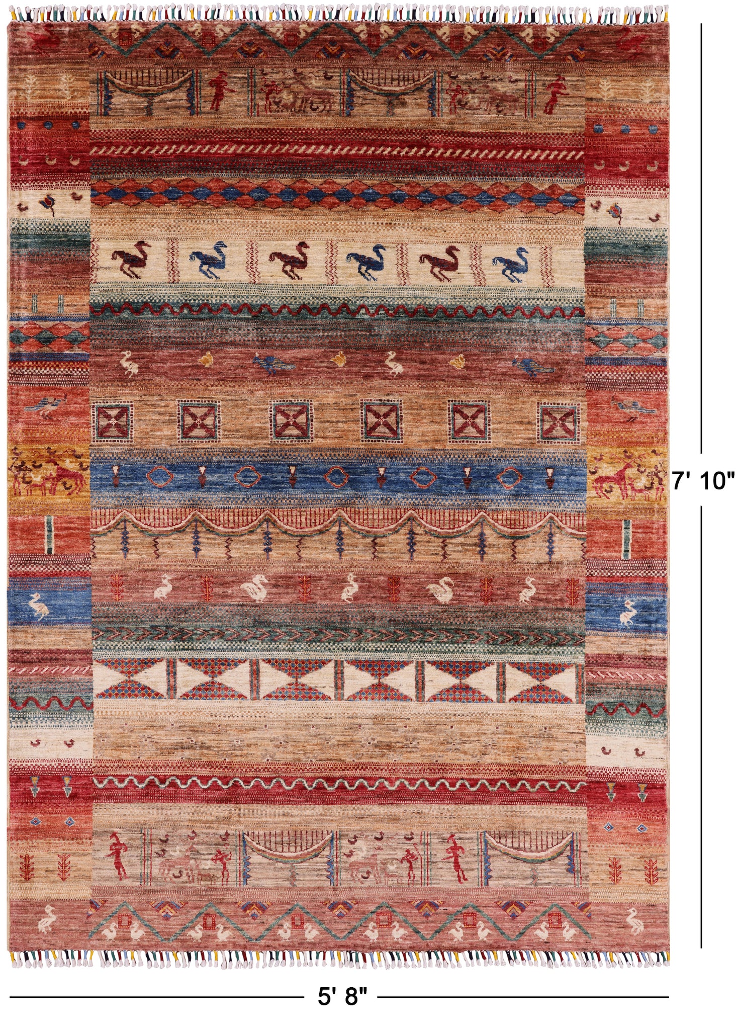 Tribal Gabbeh Hand Knotted Wool Rug - 5' 8" X 7' 10"