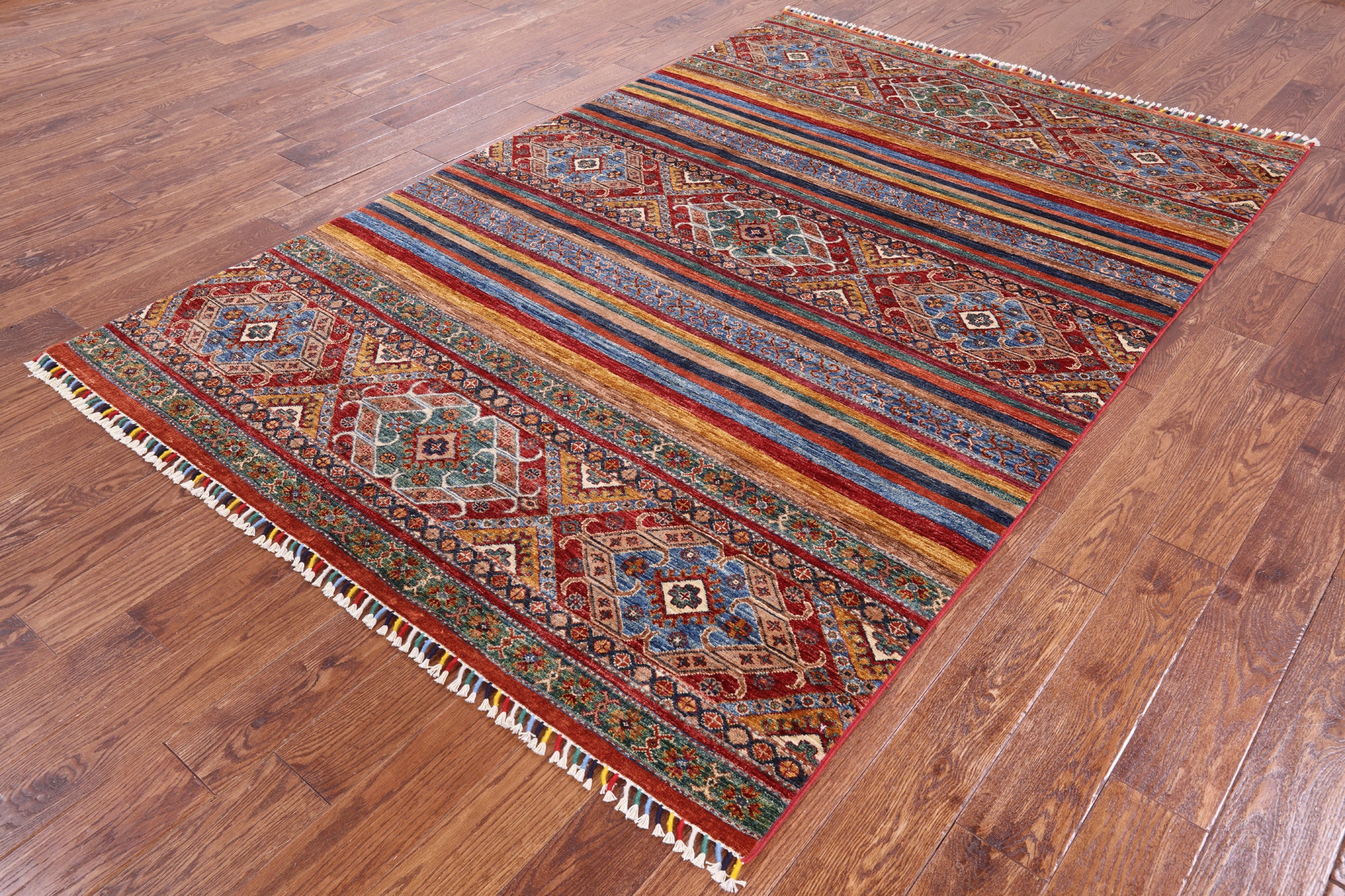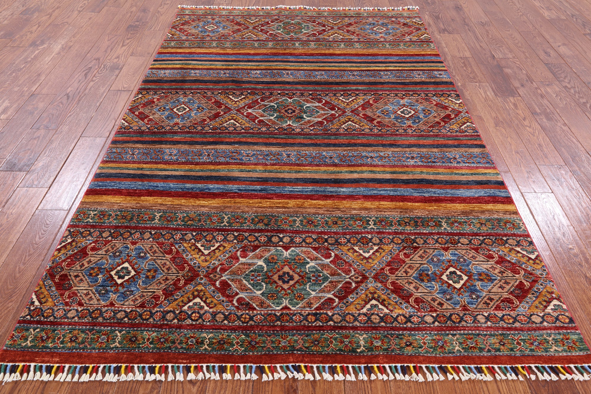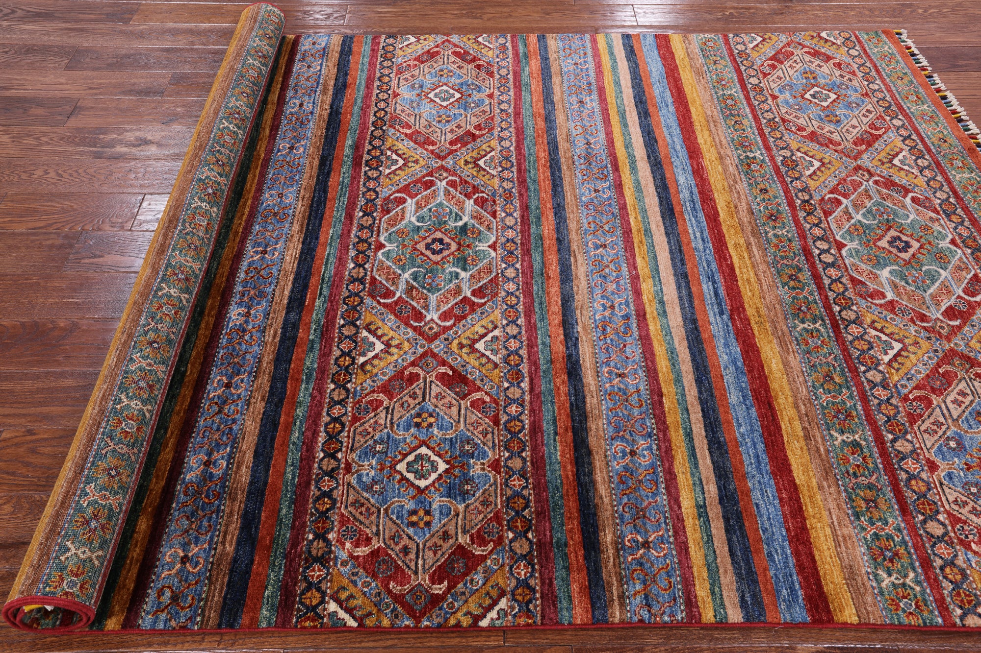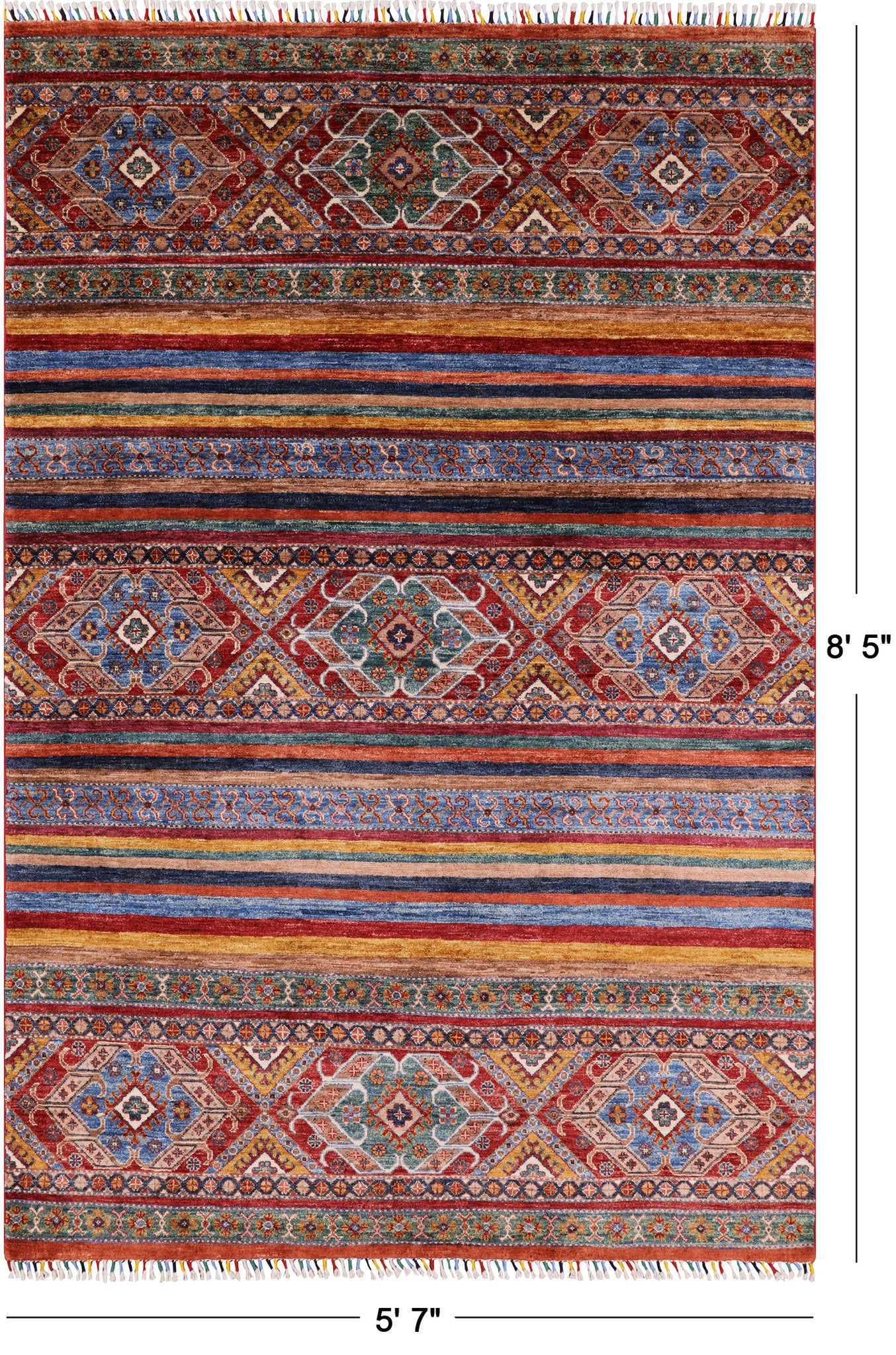 Khorjin Persian Gabbeh Hand Knotted Wool Rug - 5' 7" X 8' 5"