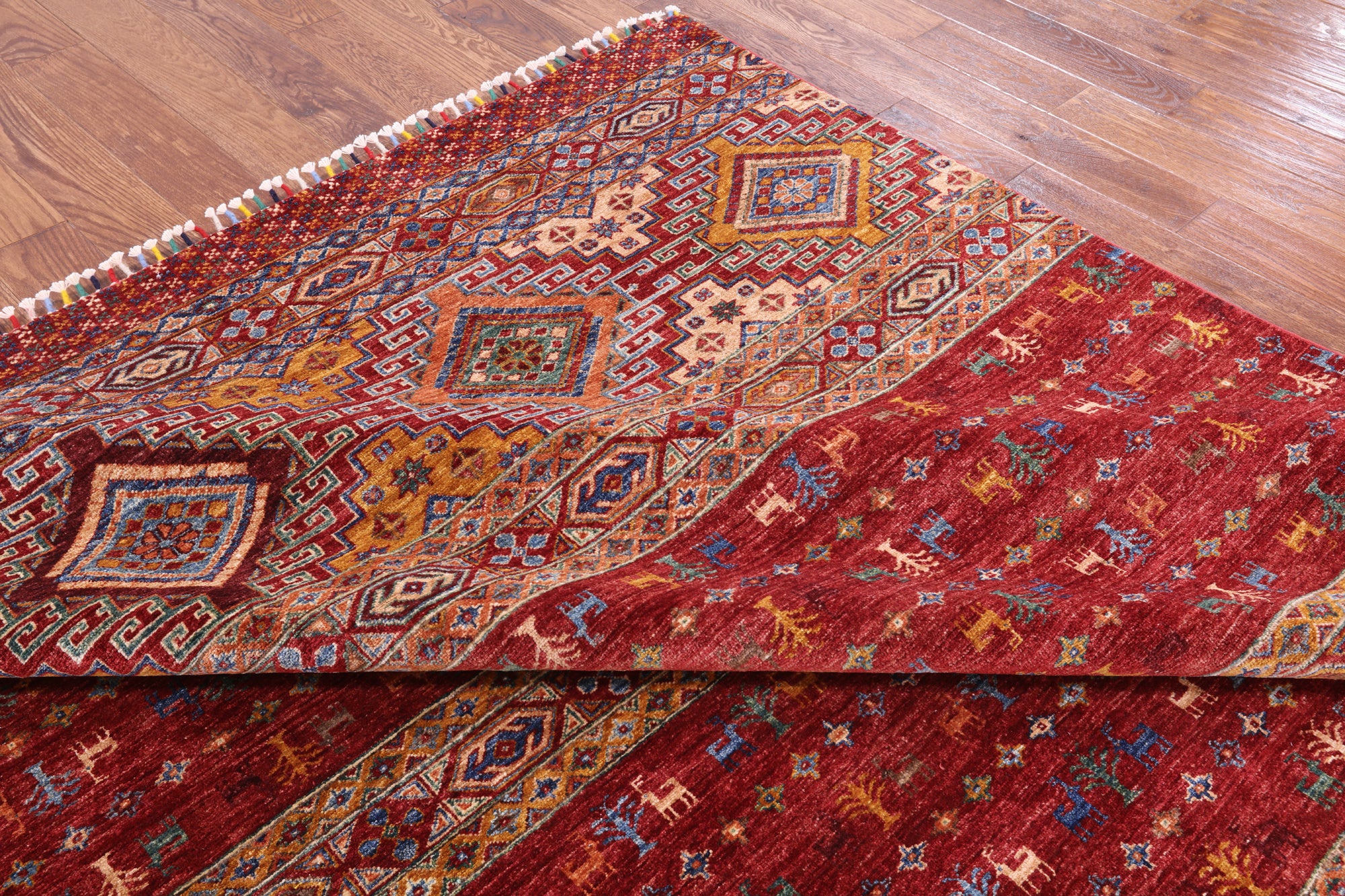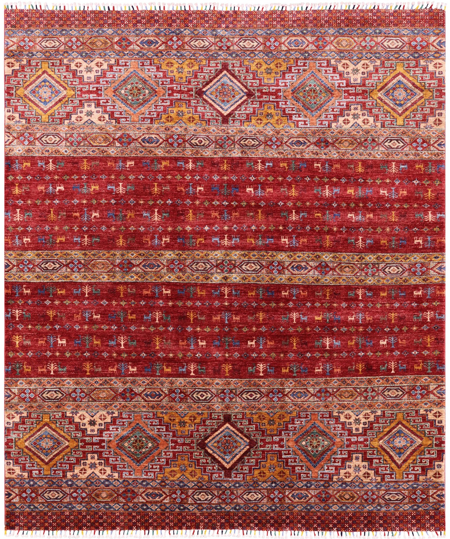 Red Tribal Persian Gabbeh Hand Knotted Wool Area Rug - 8' 3" X 9' 8"