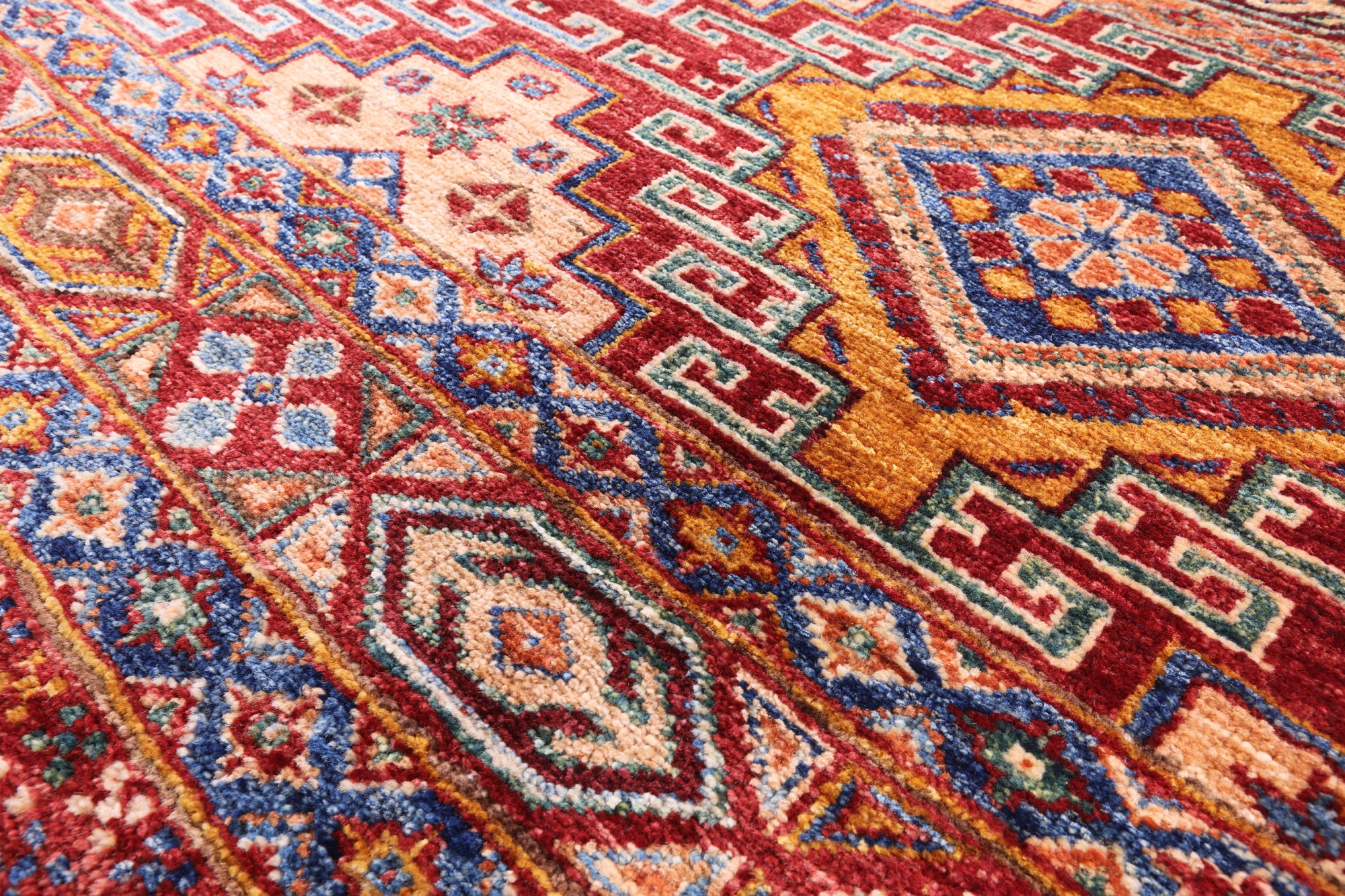Gabbeh Rugs feature hand-spun wool in both the pile and foundation. These rugs are characterized by their abstract designs that relies upon open fields of color and a playfulness with geometric figures used to depict a story, person, or event. Gabbeh Rugs are popular in a contemporary or modern setting and are extremely durable, usually small to medium size.