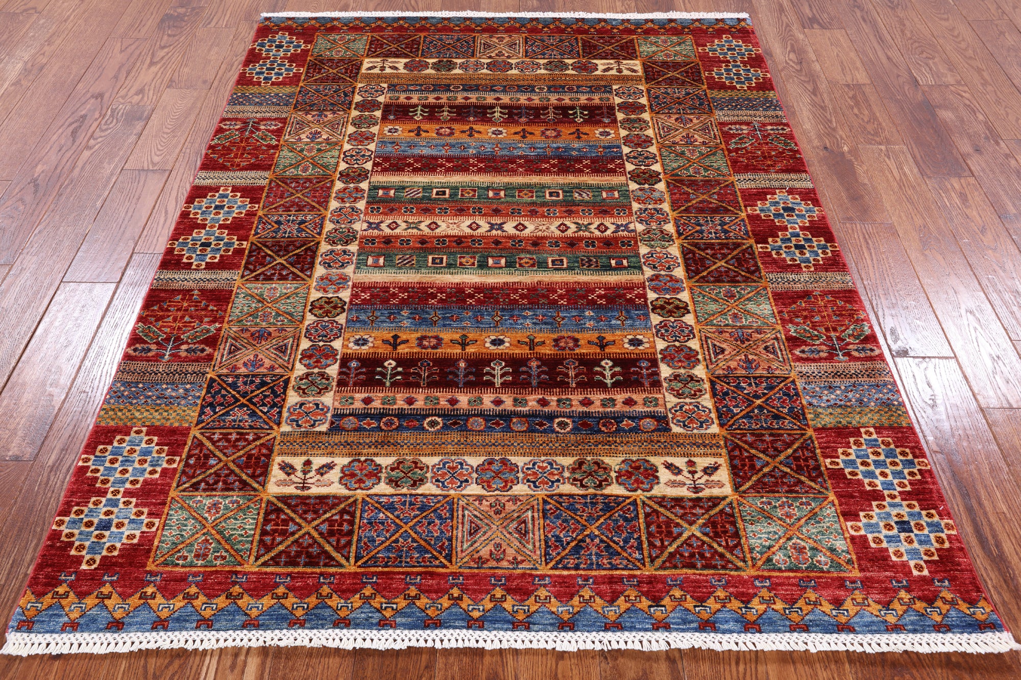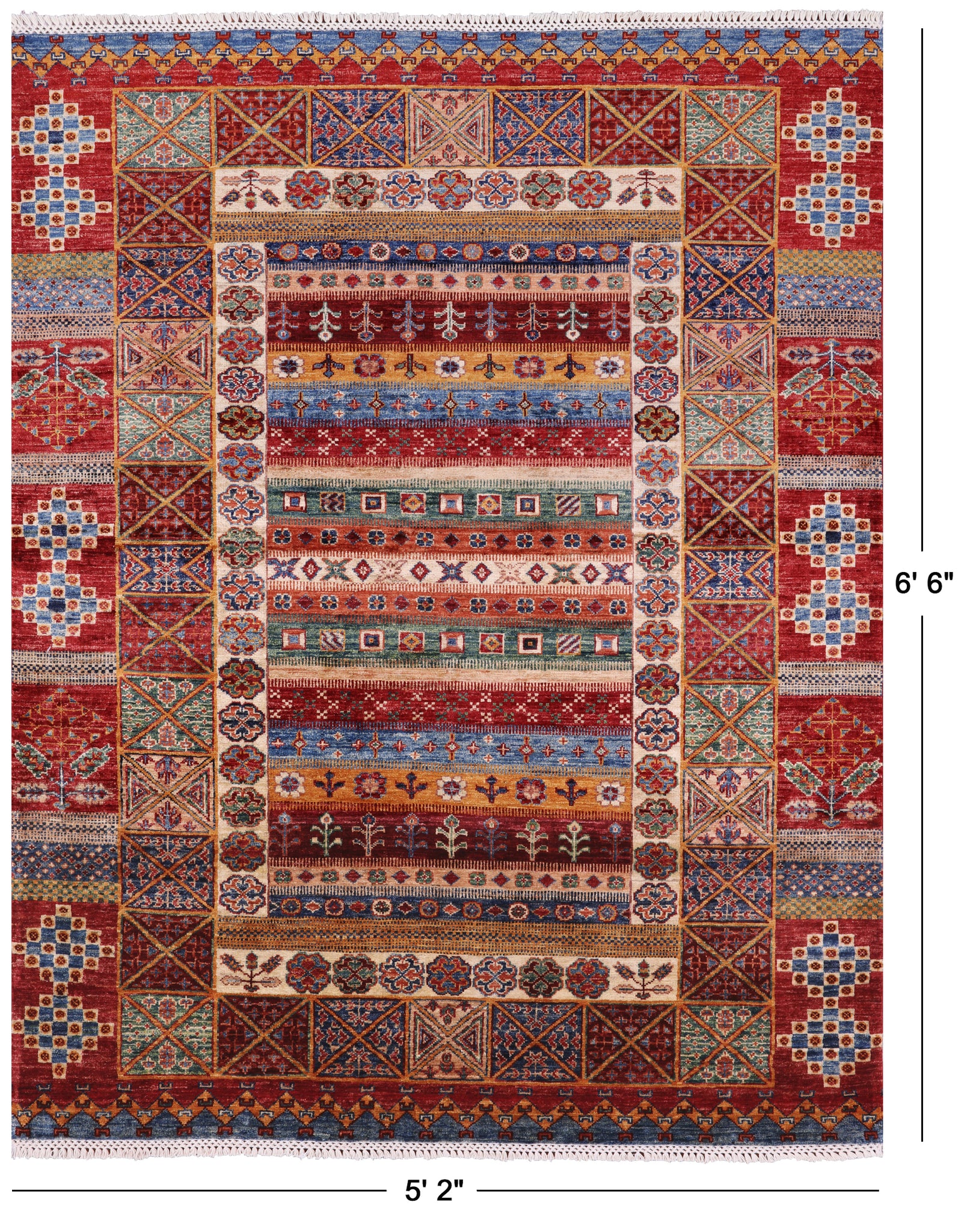 Tribal Persian Gabbeh Handmade Wool Rug - 5' 2" X 6' 6"