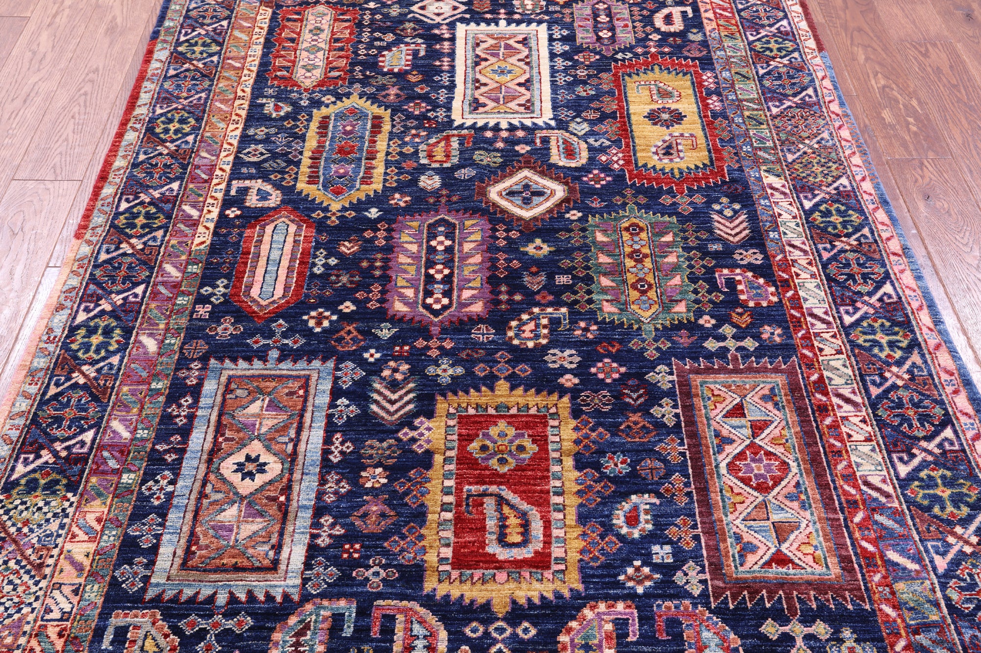 Blue Persian Fine Serapi Hand Knotted Wool Rug - 4' 10" X 6' 10"