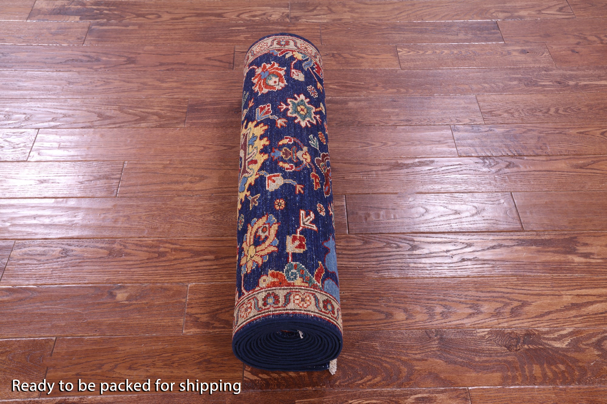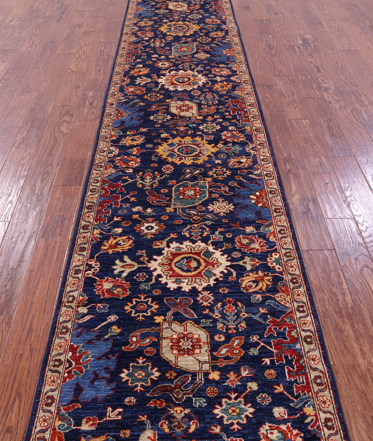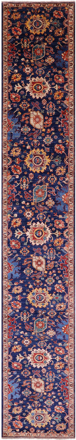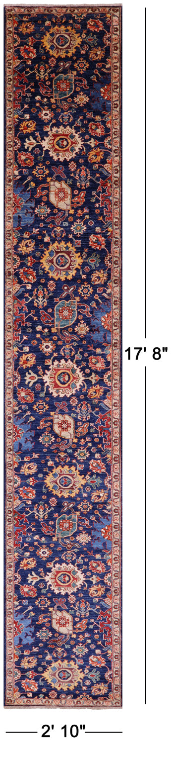 Blue Persian Fine Serapi Hand Knotted Wool Runner Rug - 2' 10" X 17' 8"
