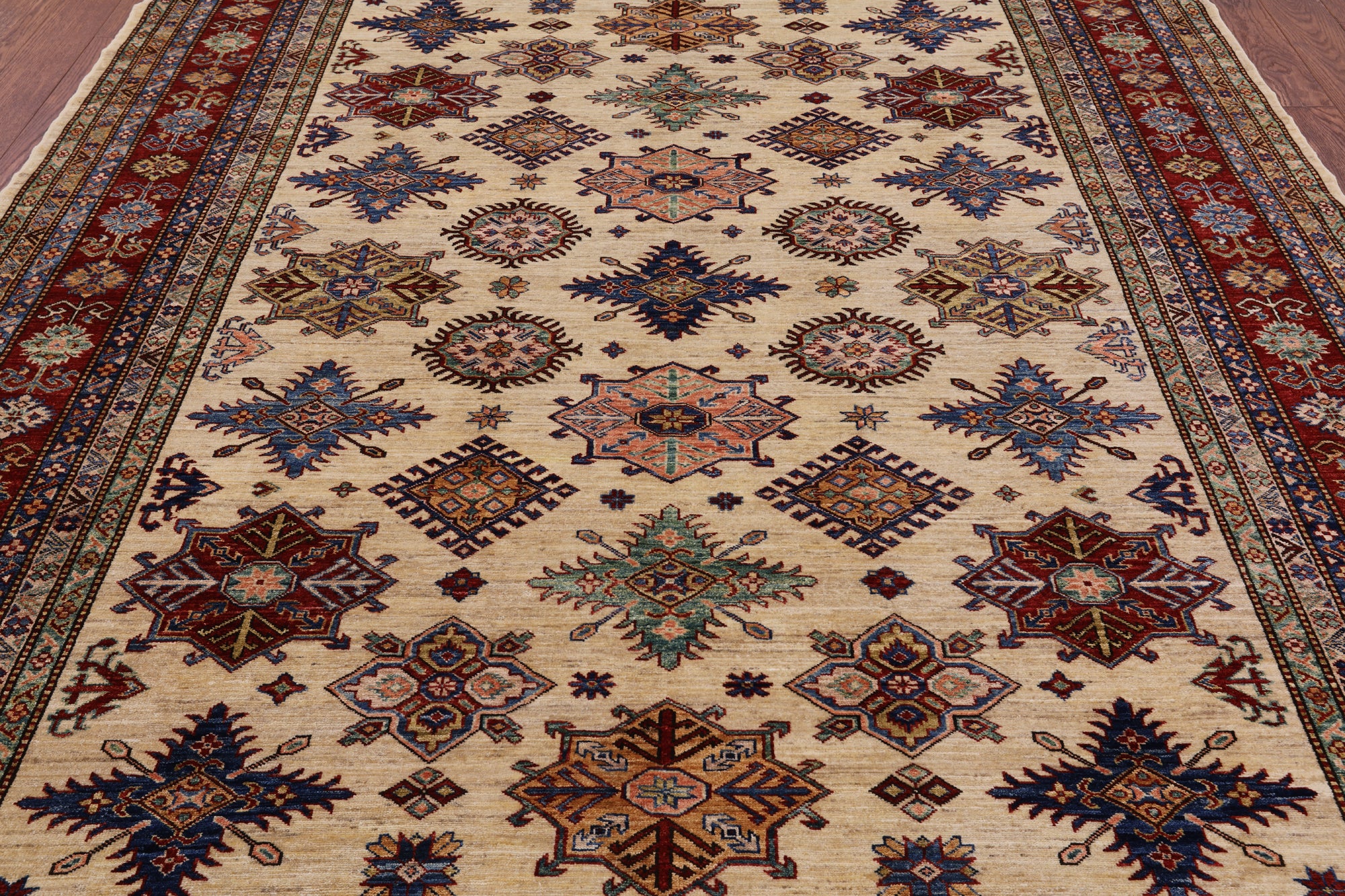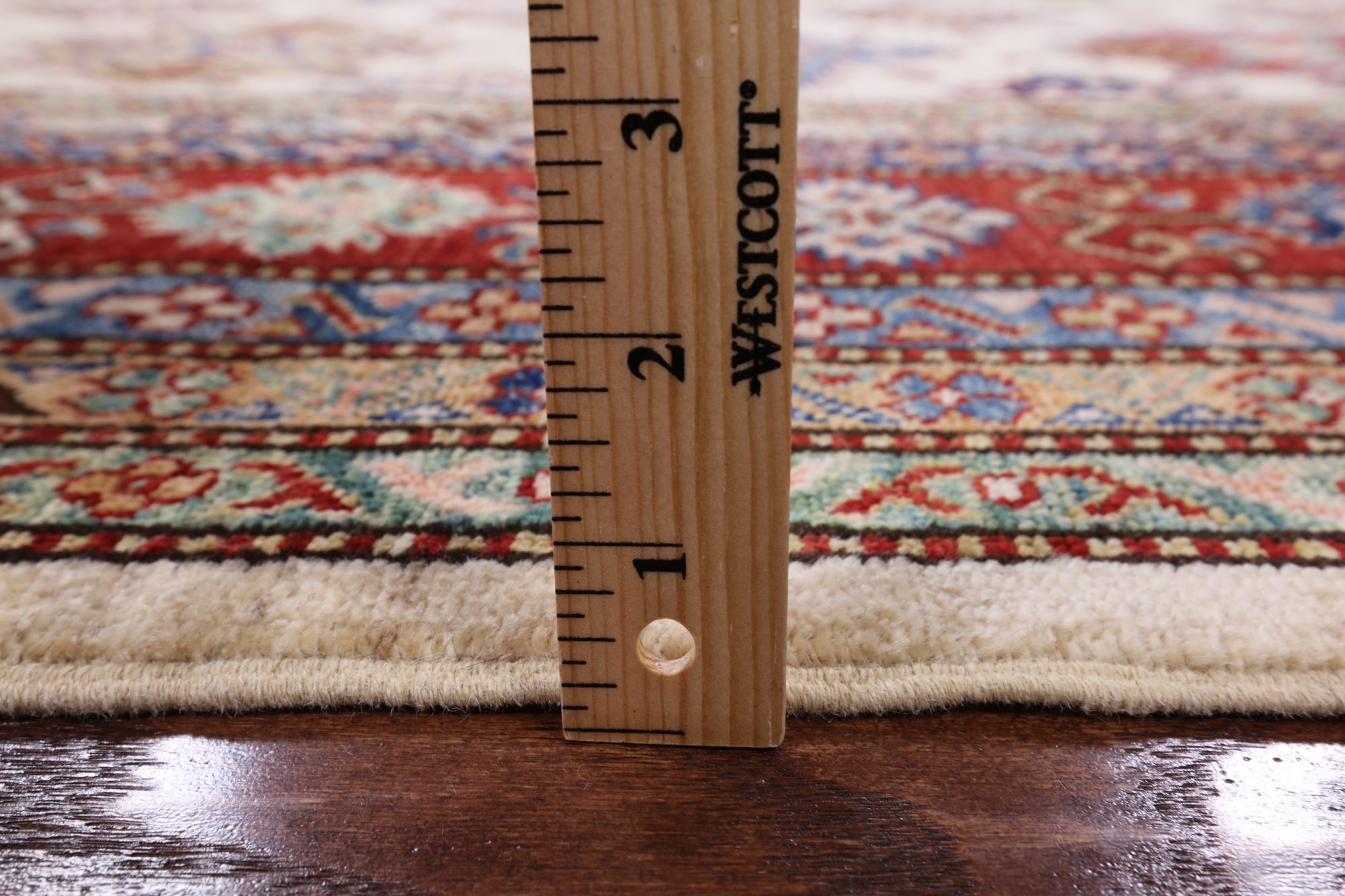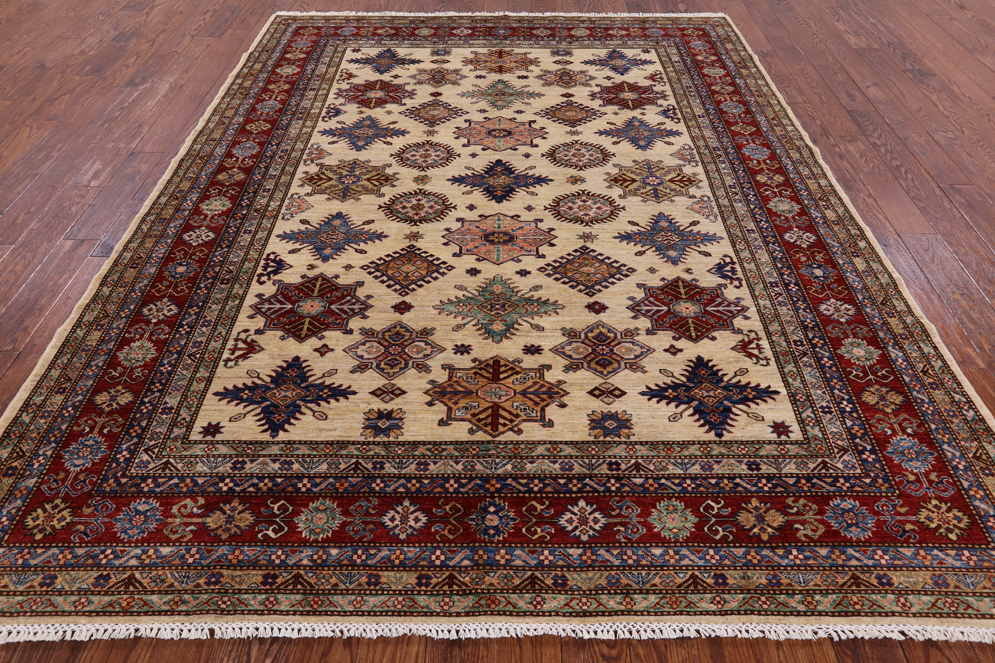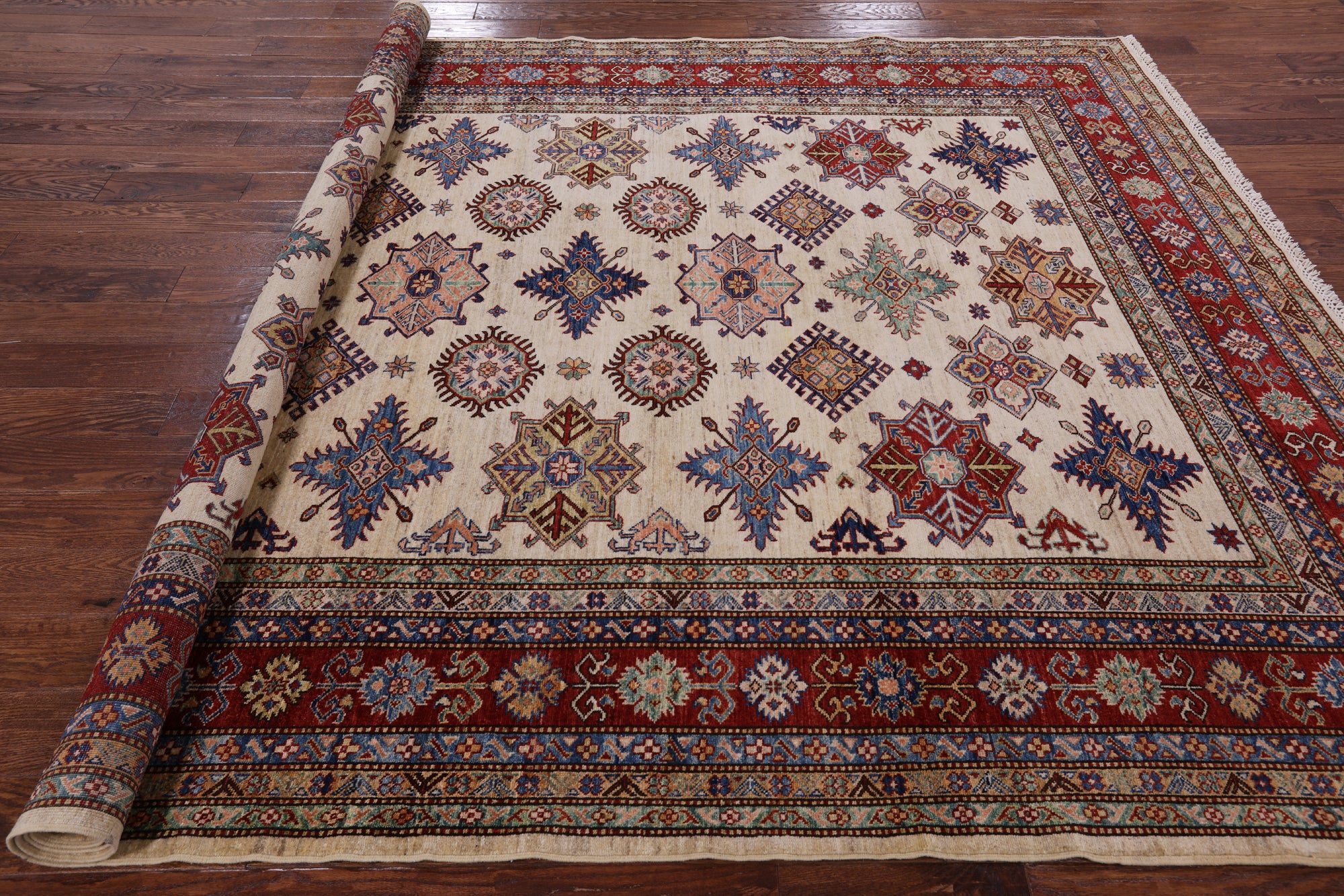 Ivory Super Kazak Hand Knotted Wool Area Rug - 7' 10" X 9' 11"